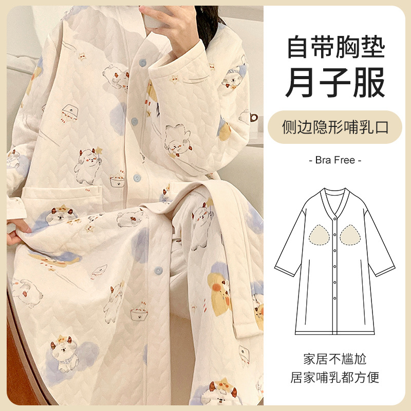 実体店月子服秋冬新作空気綿妊婦胸パッド付き授乳月子スカートL-3XLサイズ