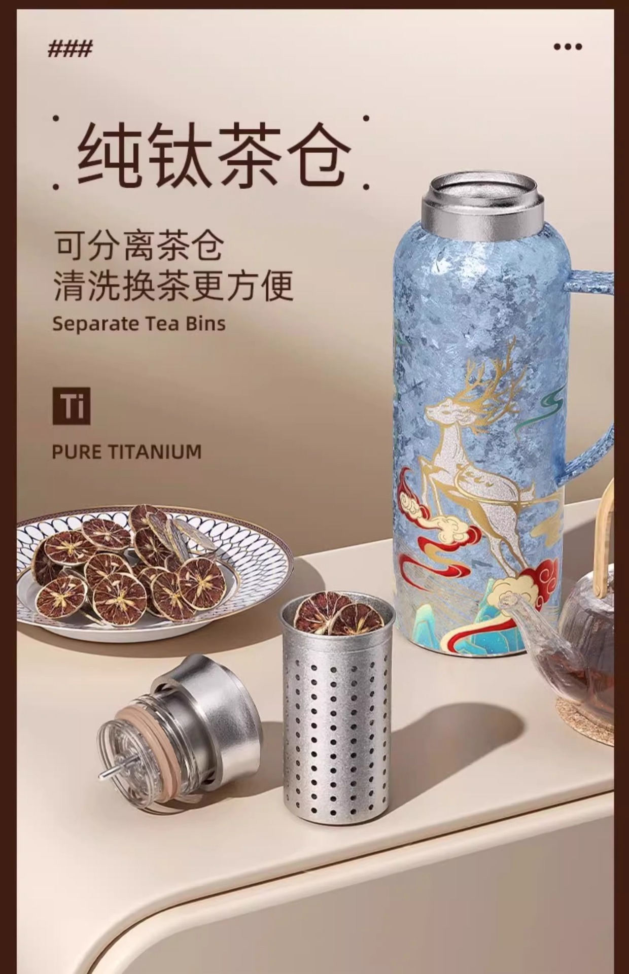 純チタン蒸し器ビジネスオフィス高颜値純チタン泡茶保温ポット家庭用車載屋外保温ポットボトル