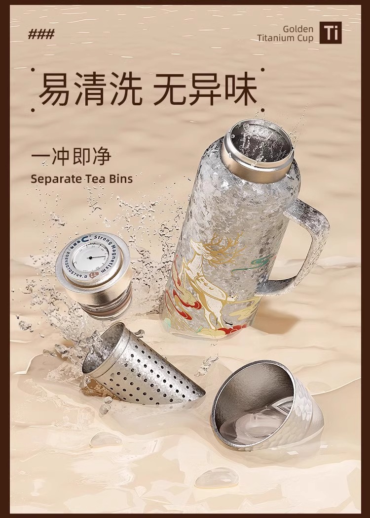 純チタン磁気保温カップビジネスオフィスティーネット付き純チタンお茶オフィスカップ高顔値車載飲料カップ