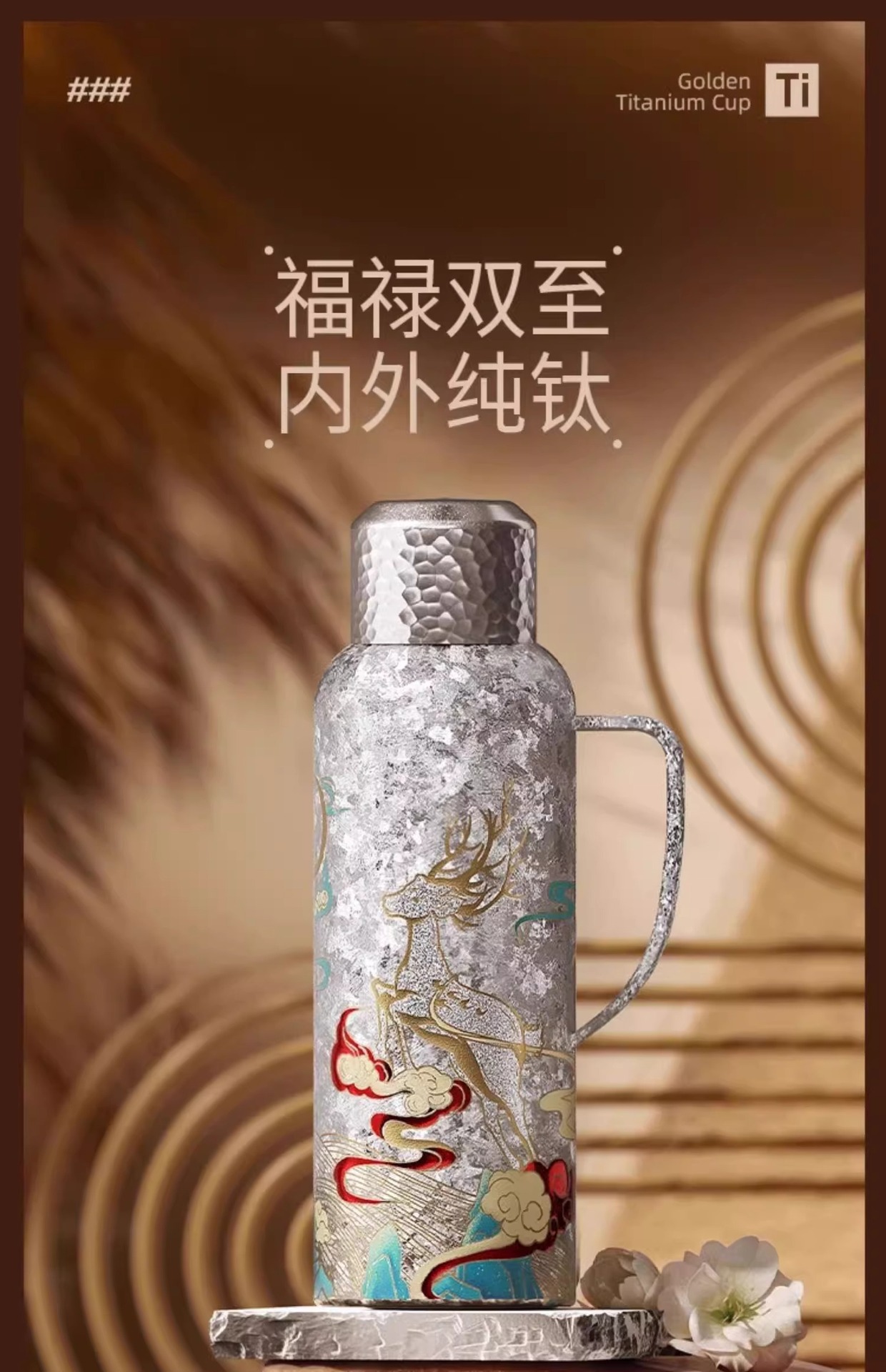 纯钛保温杯高颜值里外纯钛材质女神杯商务办公杯联系便捷纯钛水杯
