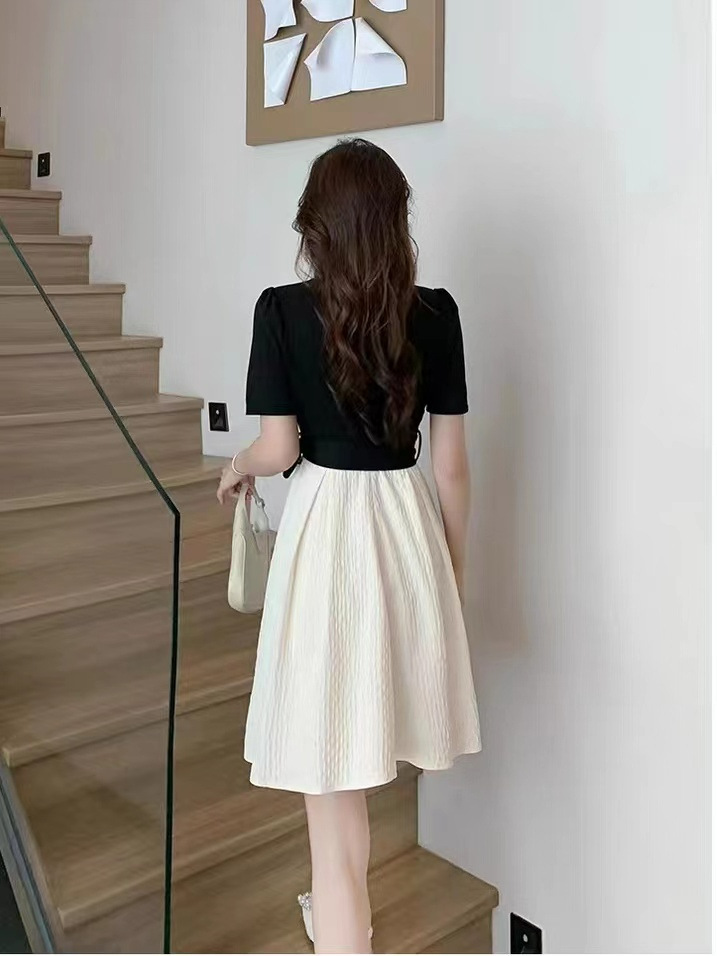 不規則なスリットカジュアルブラックドレスレディース夏の新しいヘップバーンスタイルスリムTシャツヒップカバースカート