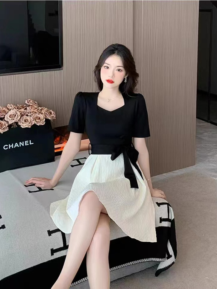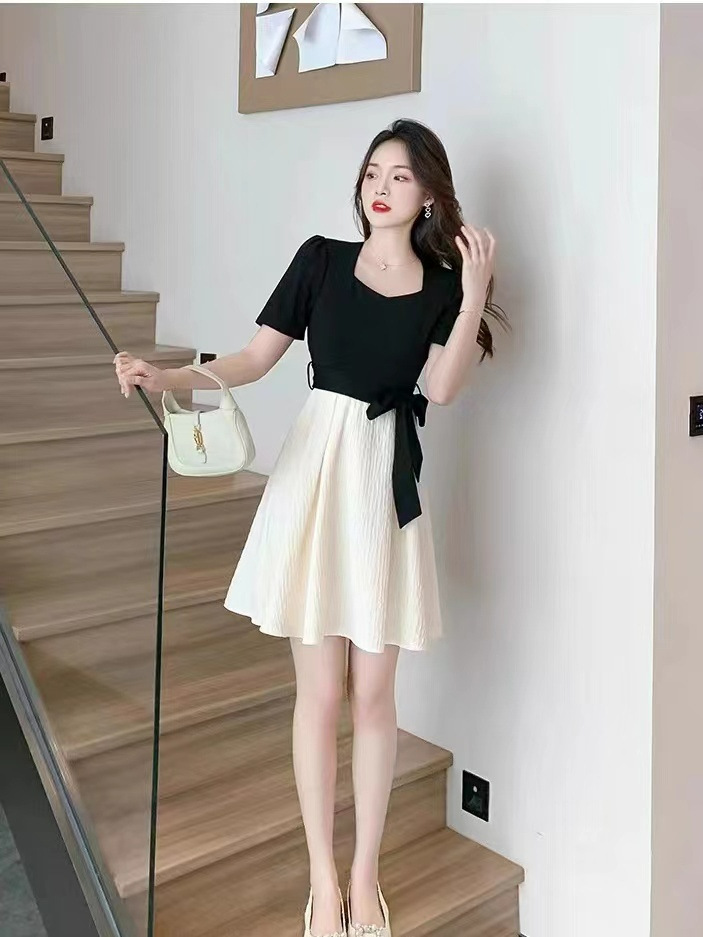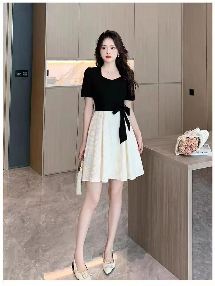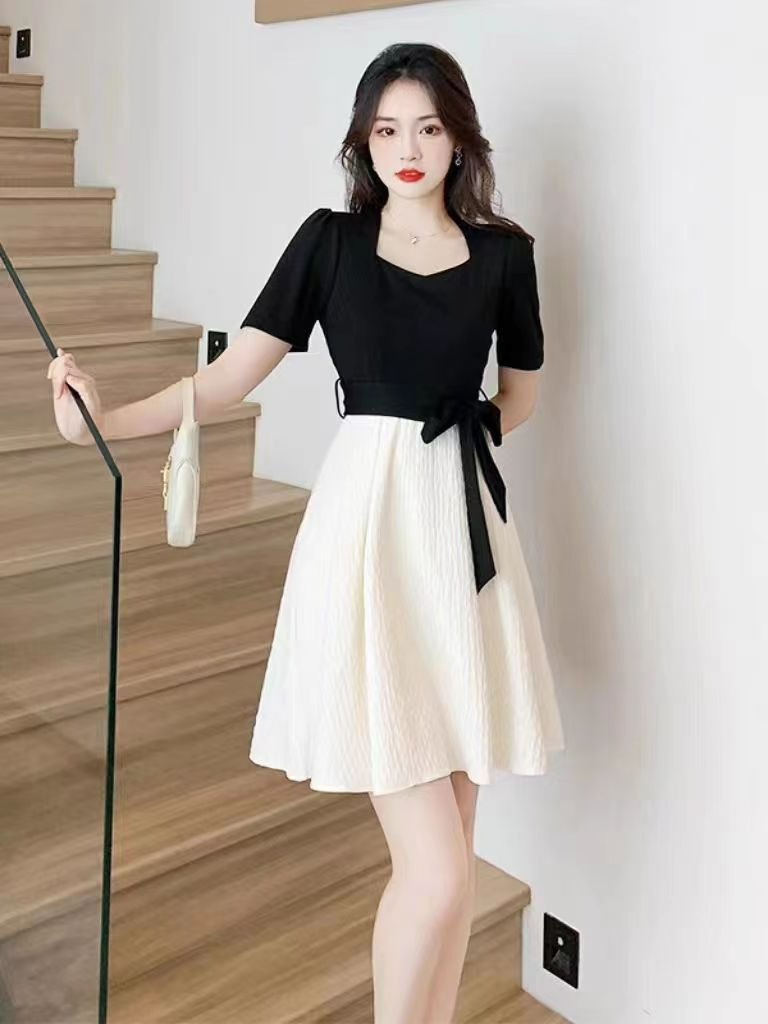 2025年夏の新型フランス初恋の白いロングスカートの女性は腰を収めてやせて小さくて清新な気質の半袖のワンピースを現します。