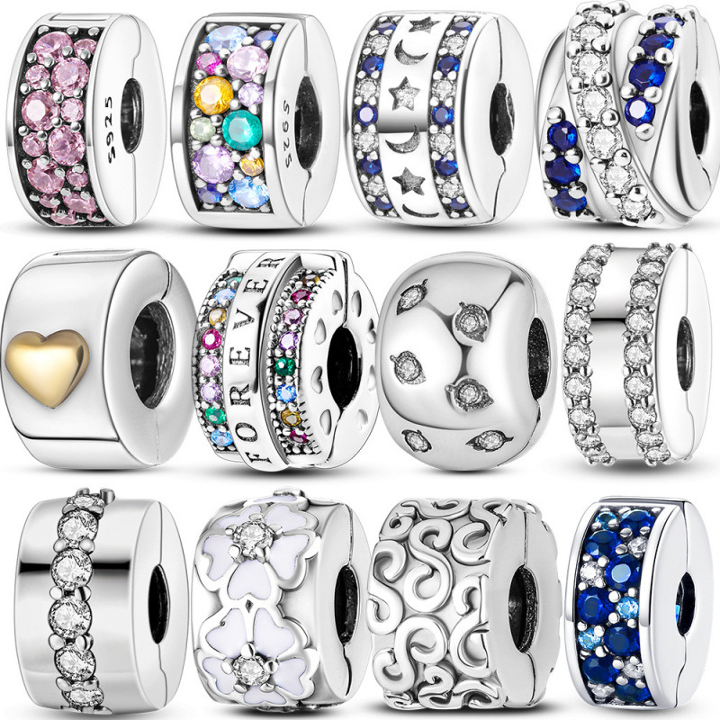 MULA 925 スターリングシルバー クラスプ クリップ チャーム ビーズ フィット オリジナ
