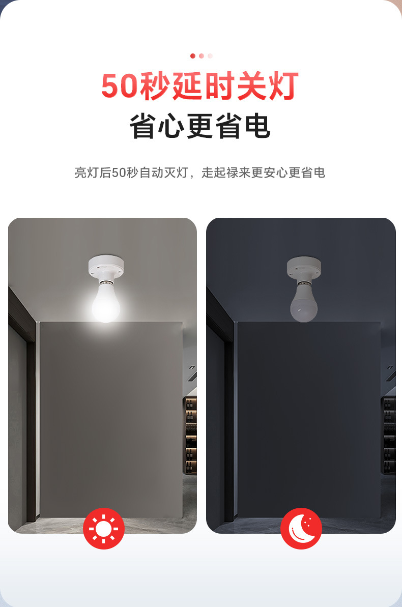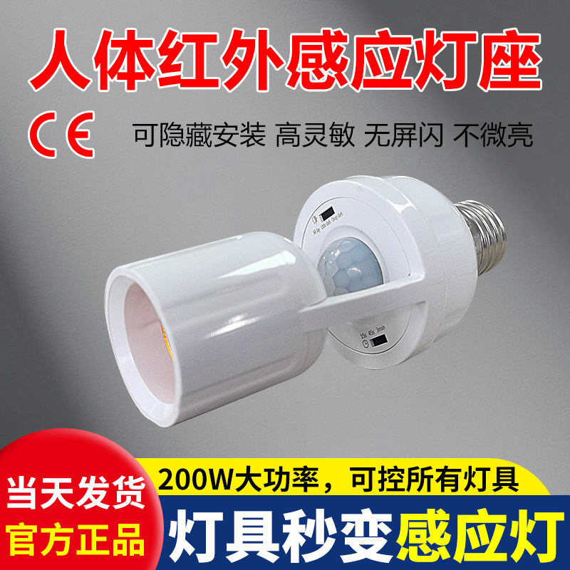 智能人体感应灯座可调自动感应延时开关雷达感应灯头明装感应开关
