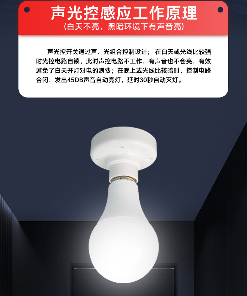 音響光制御スイッチ灯台ビル誘導遅延家庭用音響制御スイッチe27ねじ口明装ledスマートランプヘッド