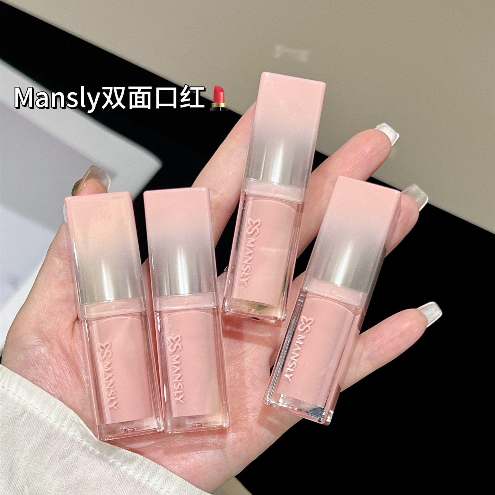 曼诗丽双面三色口红柔雾哑光镜面双面双效显白不易沾杯学生女彩妆