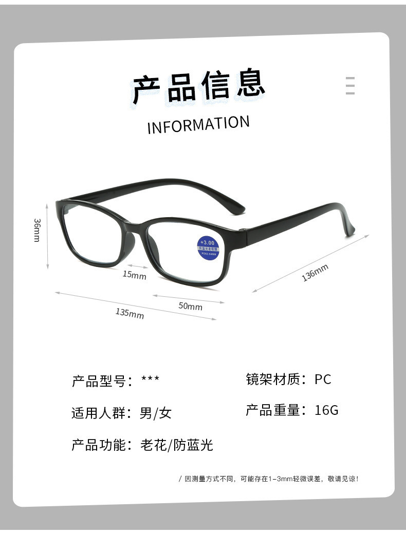 老眼鏡女性ファッション優雅超軽量防ブルーライト老眼鏡ハイビジョン老人老光全枠老眼鏡男