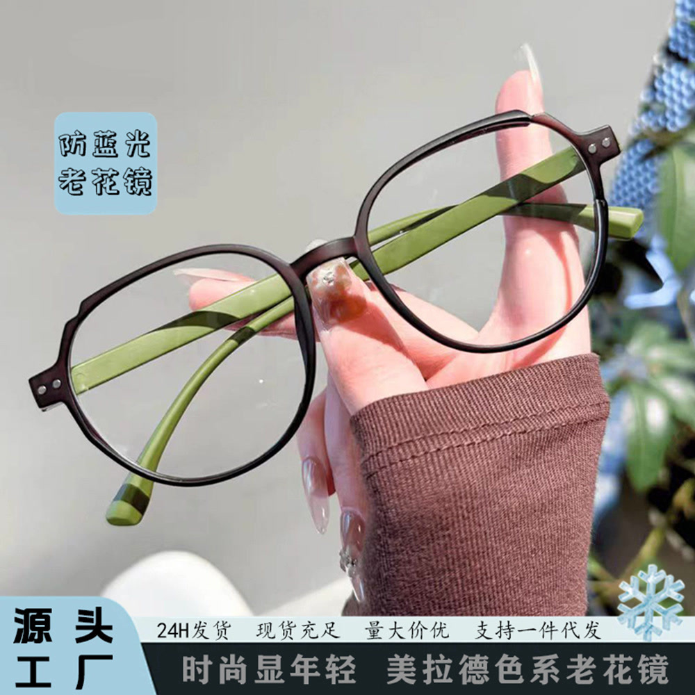 ネジなし超軽量ブルーライト老眼鏡中高年ハイビジョン女性眼鏡復古小枠老視鏡卸売り