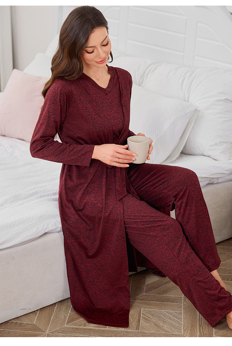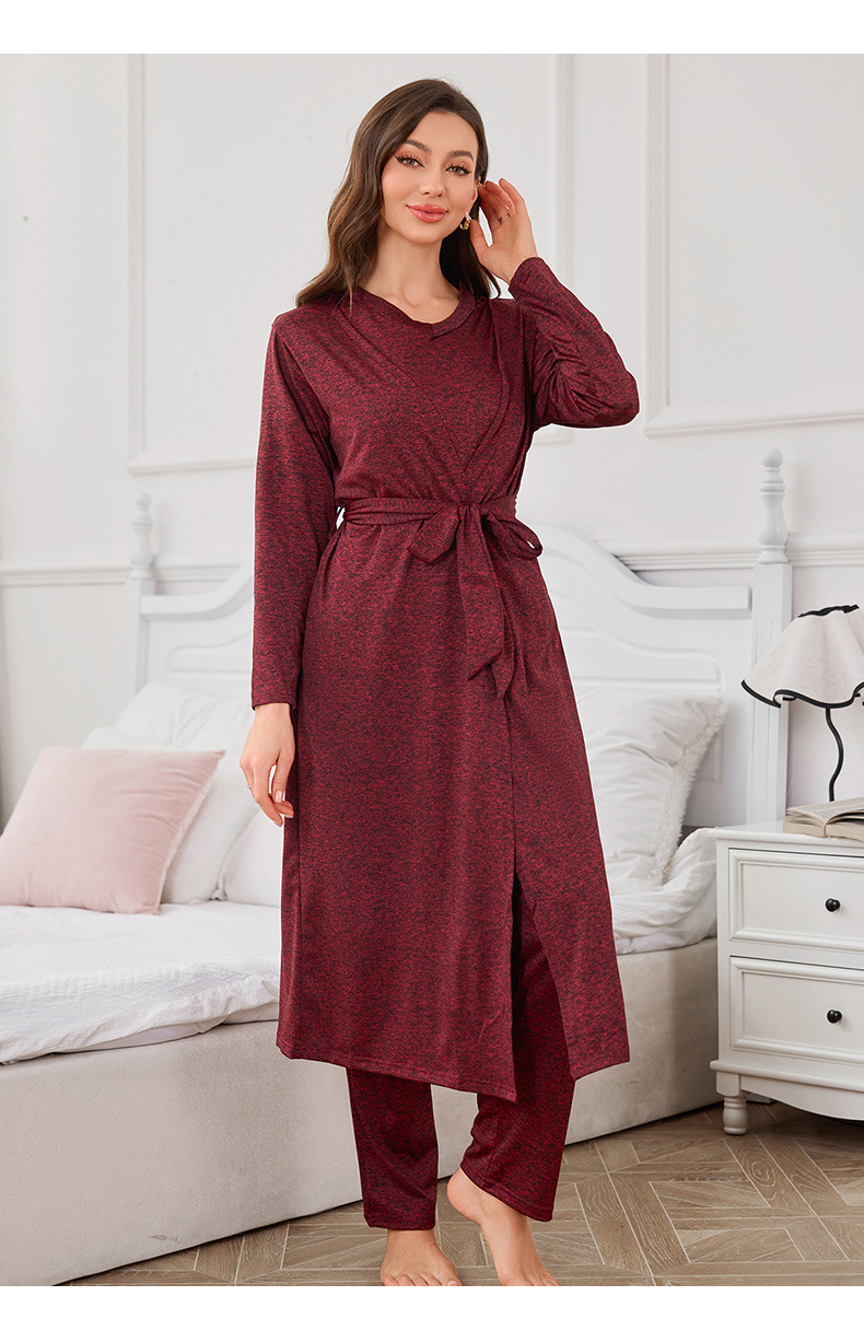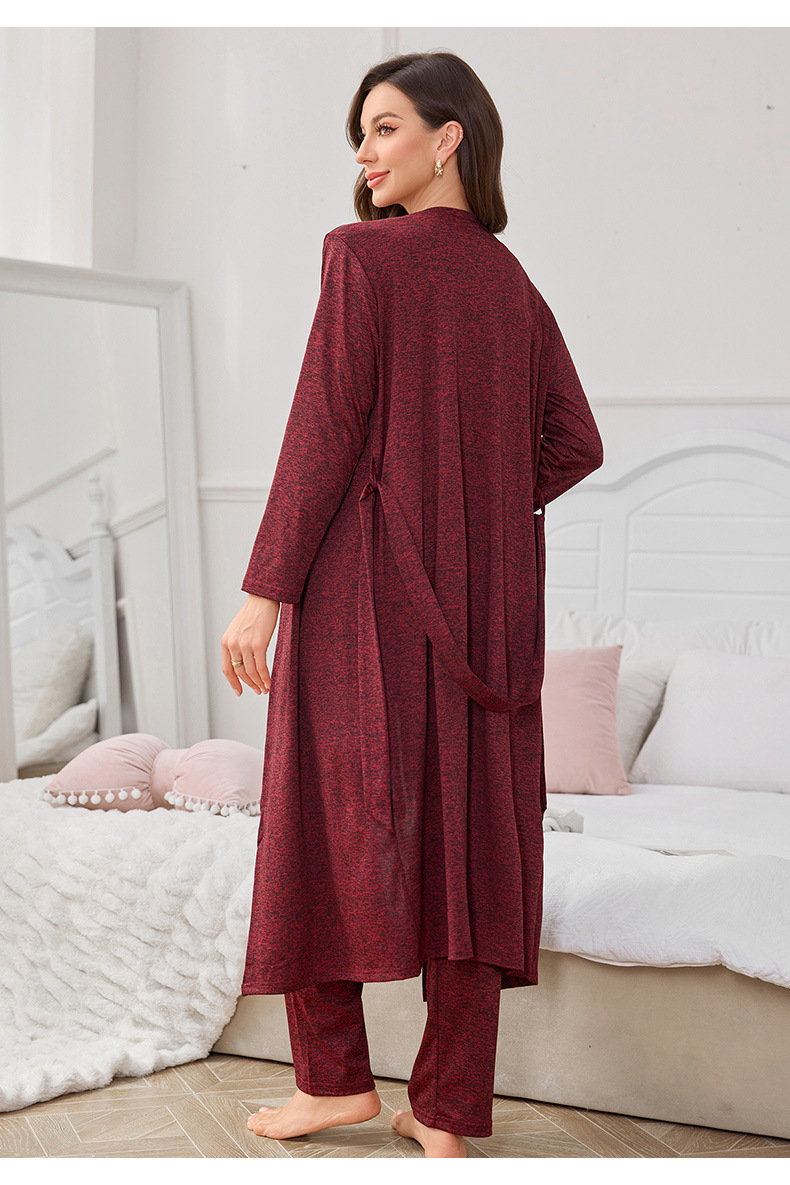 メーカー直販の豪華で高貴な純色のニット綿の寝衣の三点セットはアマゾンのクロスボーダーの家の服のパジャマの女性です。