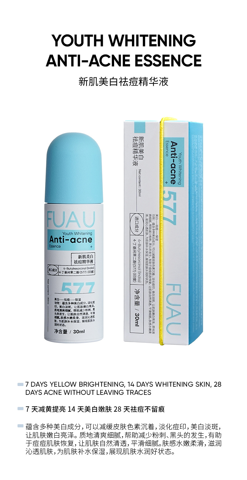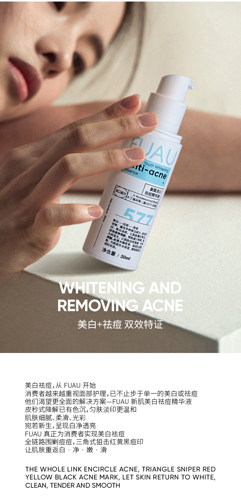 FUAU サリチル酸配合 新肌美白エッセンス ニキビ跡、ニキビ跡の凹み、毛穴縮小、肌の浄化、美白、修復効果