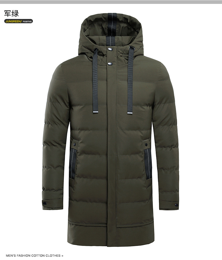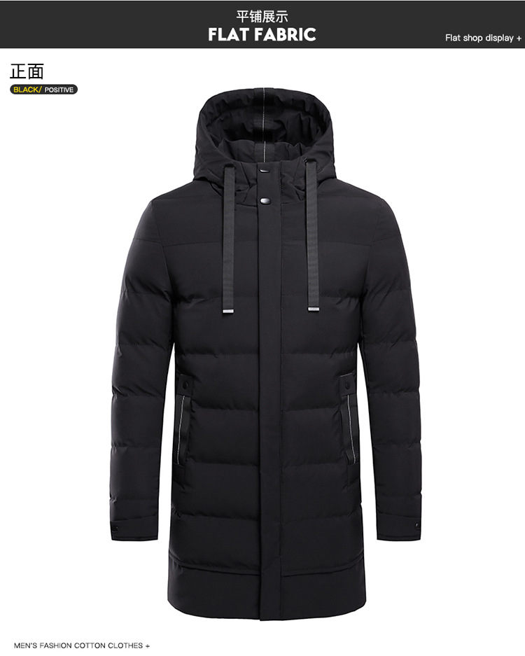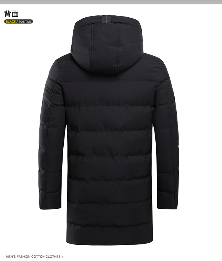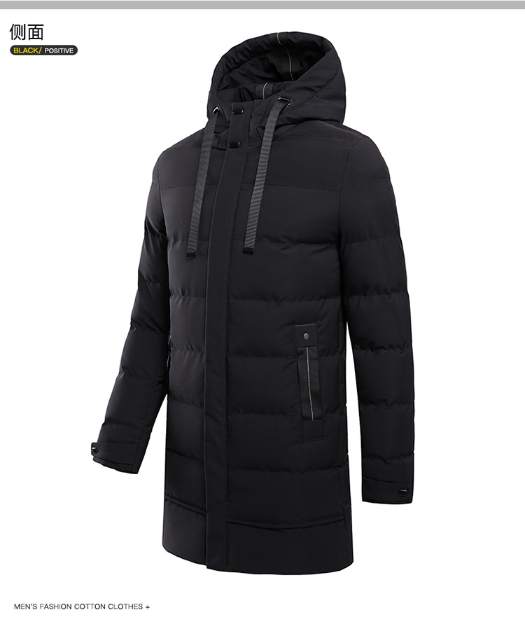 メーカー直販秋冬の男性は帽子をかぶって純色の中の長さの綿服を厚くします。