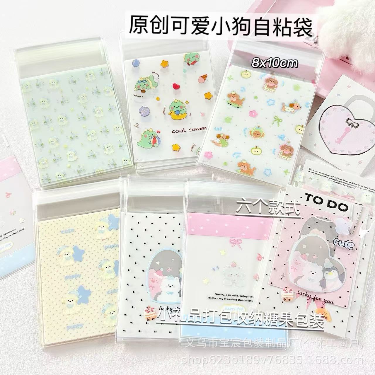 見栄えの良いかわいい子犬の粘着袋コレクション、小さなギフト包装袋、ジップロックバッグ、漫画のキャンディーバッグ