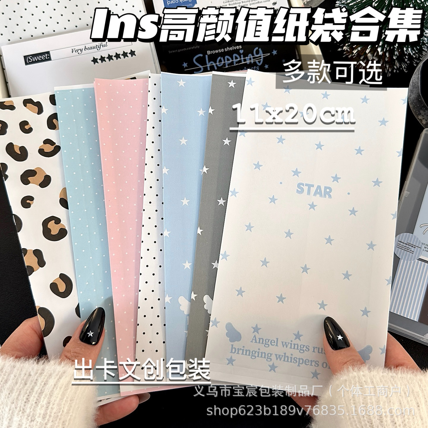 ins韩系波点星星纸袋合集高颜值出卡文创打包大容量包装牛皮纸袋