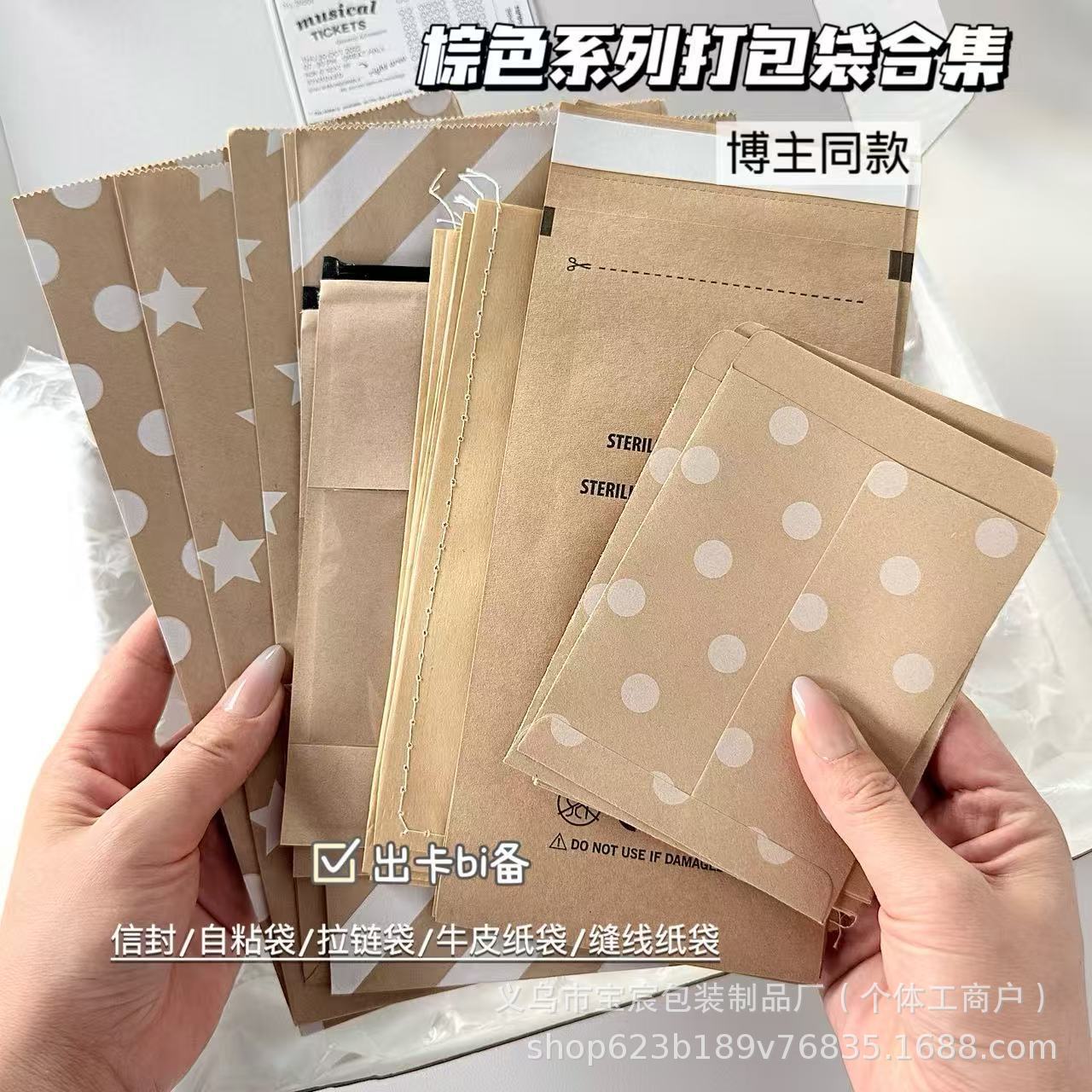 博主同款Ins风棕色系列信封牛皮纸袋合集出卡文创打包袋diy高颜值