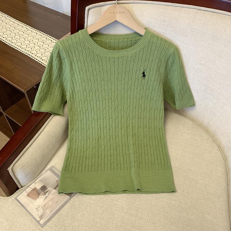 柔らかいモチモチの肌の麻花の馬の刺繍の麻花のニットの女性の半袖の春夏の通気性の綿糸の復古の百合の上着