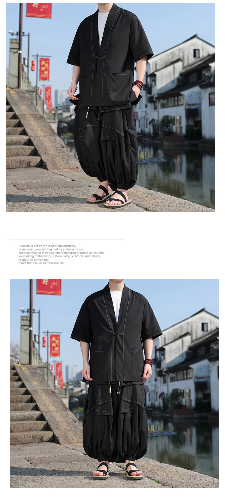 中国風夏の新型男性ファッション氷糸レトロtシャツゆるい大サイズ禅服薄い半袖2点セット