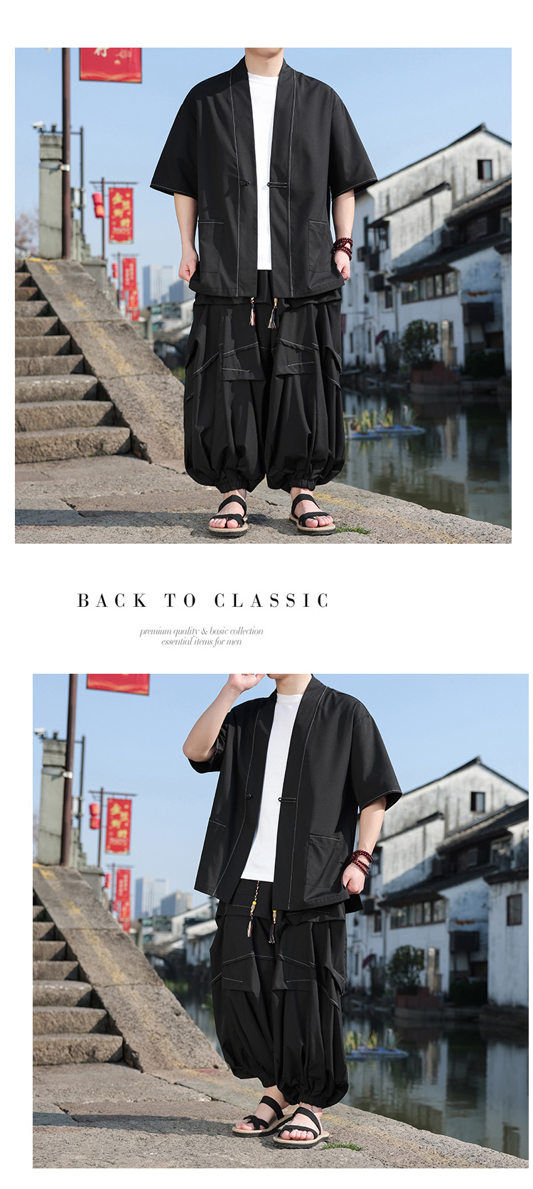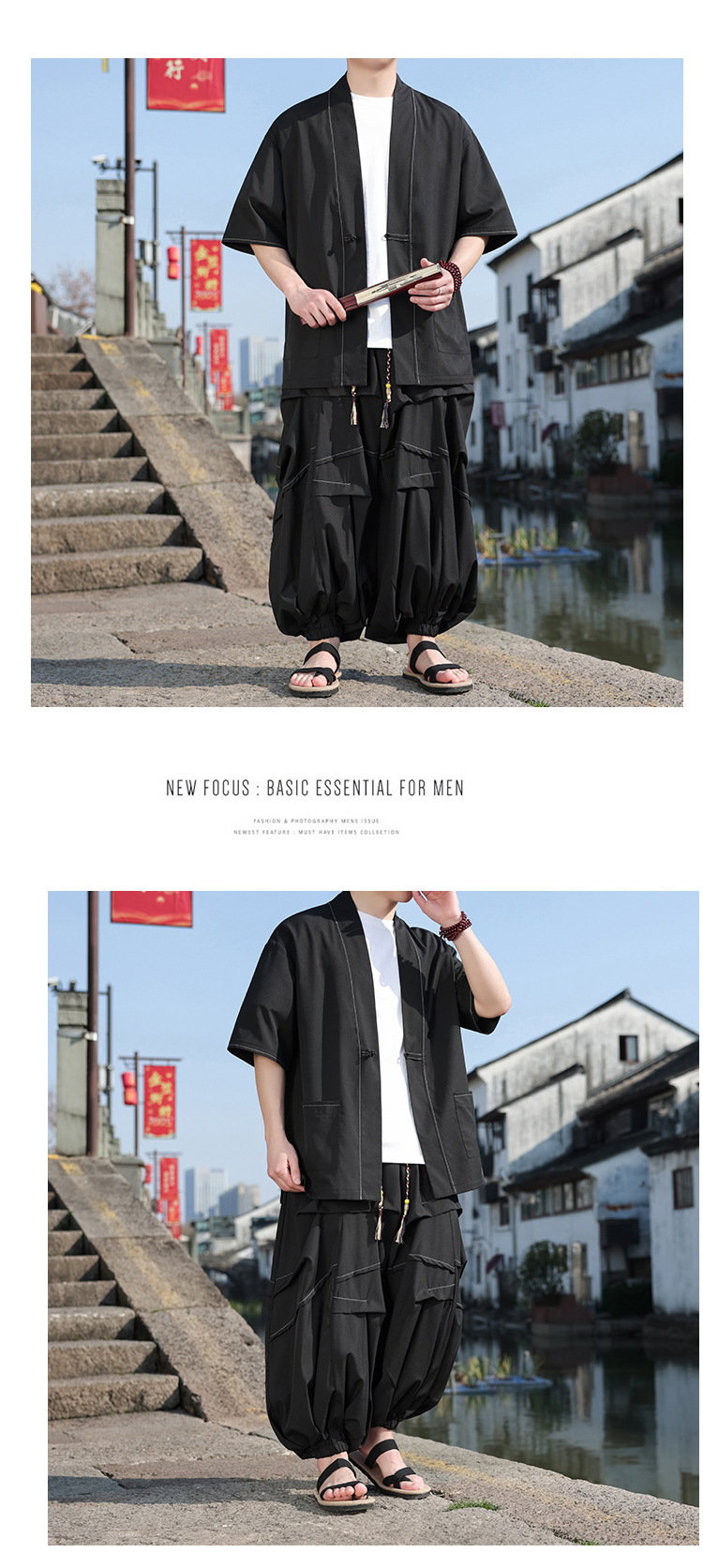 2025秋季新款中国风男装棉麻唐装拼接复古中式大码潮流休闲两件套