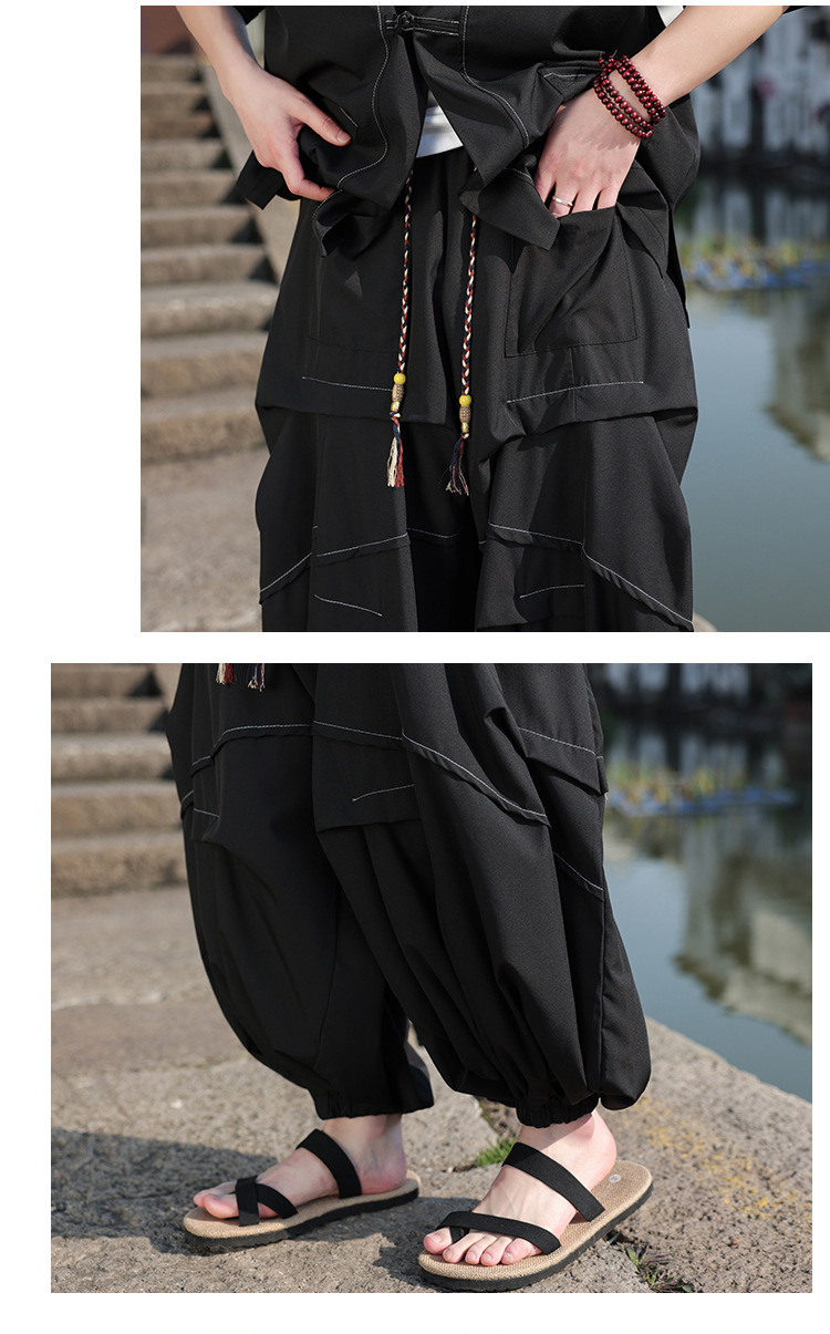 外国貿易の新型中国風の純色の日本は口の綿の麻のズボンの薄い項の男性の復古の潮流のズボンのハンガーのズボンを閉じます。