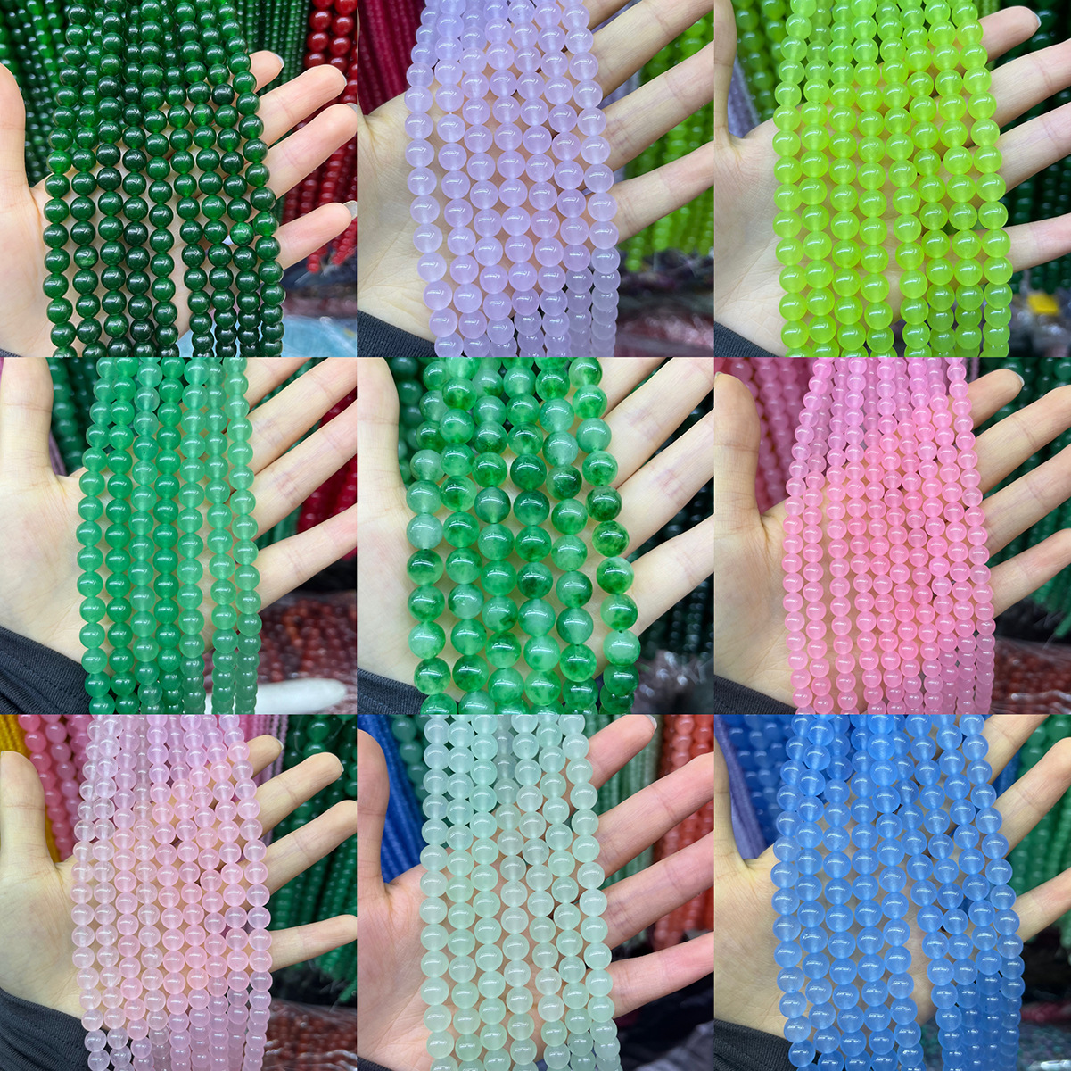 仿和田碧玉散珠批发 青海玉髓珠子 晴水圆珠 藕粉 蓝水饰品配件