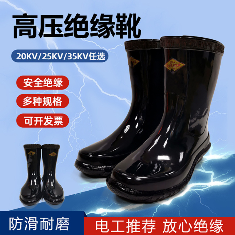 高電圧絶縁ブーツ、電気技師用耐電気ゴム絶縁靴、電気安全作業用高電圧耐性ハイカットシューズ、防水