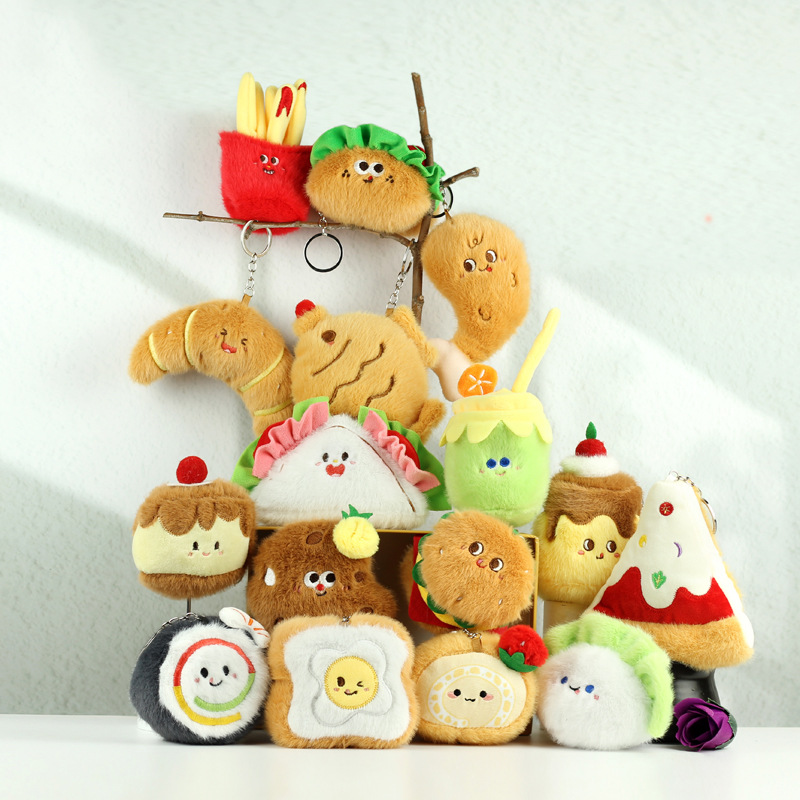 かわいい萌えハンバーガーのストラップのぬいぐるみの寿司ポテトパンの牛角バッグのキーホルダー