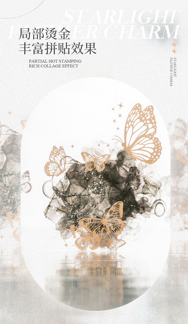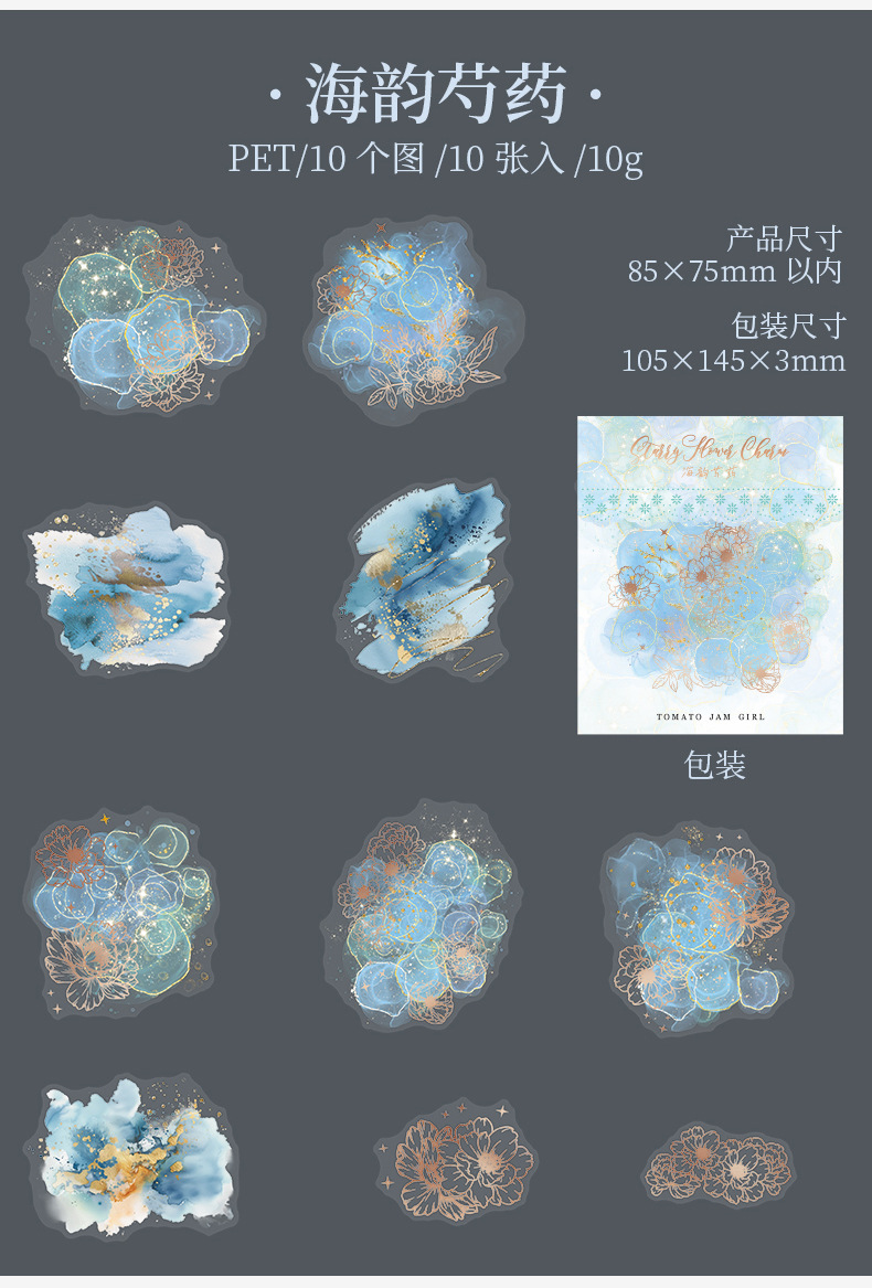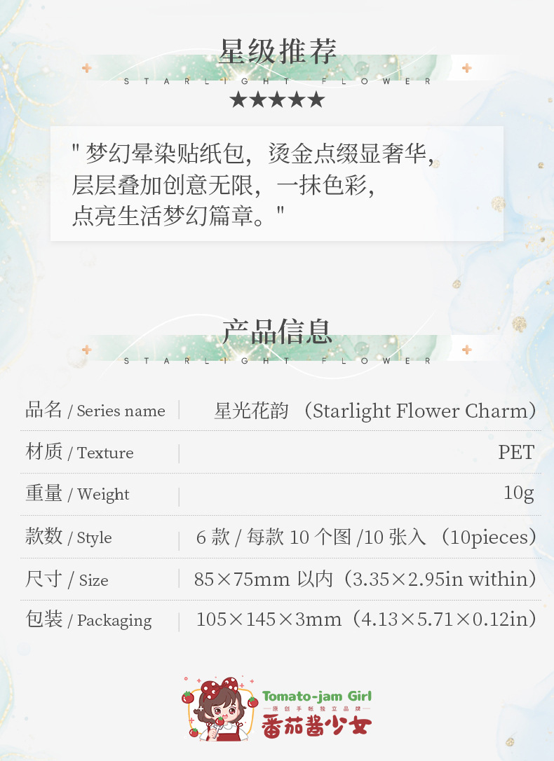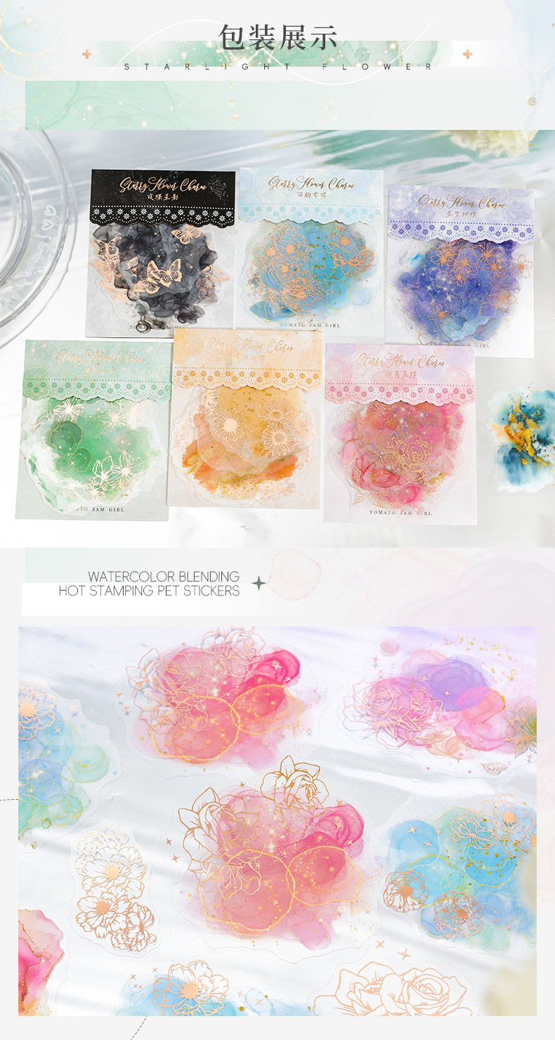 ケチャップ少女水彩ぼかし箔押しPETシール星光花韻シリーズ手帳素材DIY装飾タイル
