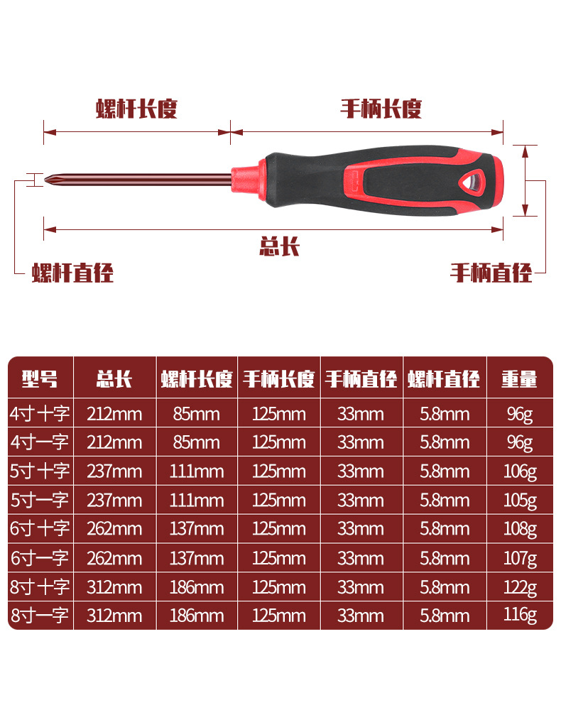 ネット赤起爆ドライバー卸売り代発工場直供一字十字6 × 100四寸五寸六寸八寸