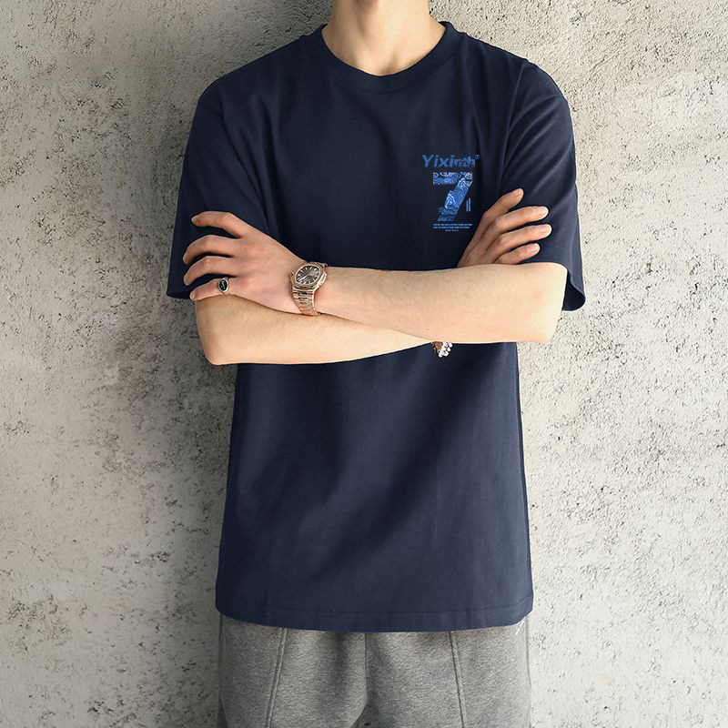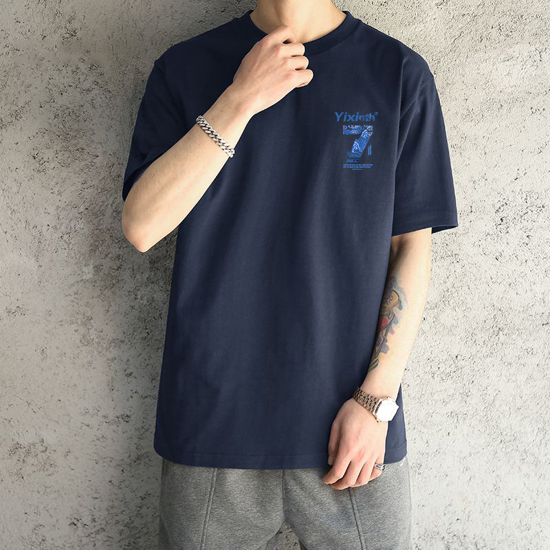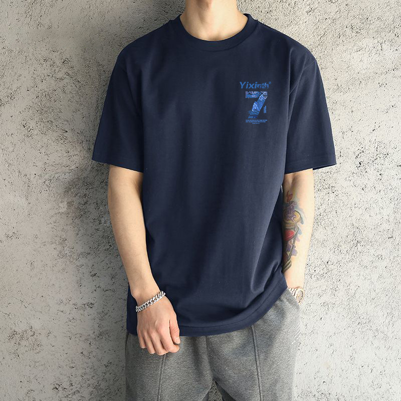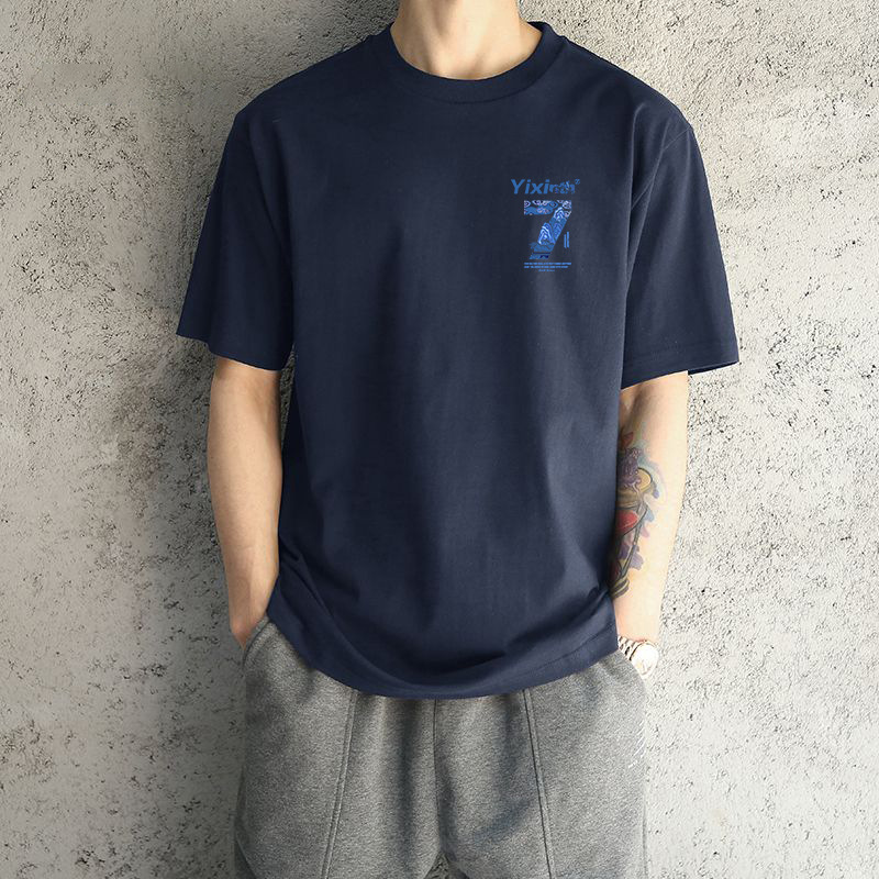 ネイビーブルーコットン半袖-2481