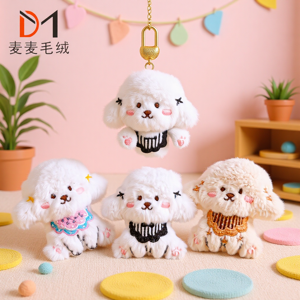 可爱毛绒珍珠领结贵宾犬玩偶挂件卡通小狗钥匙扣包包饰品配件批货