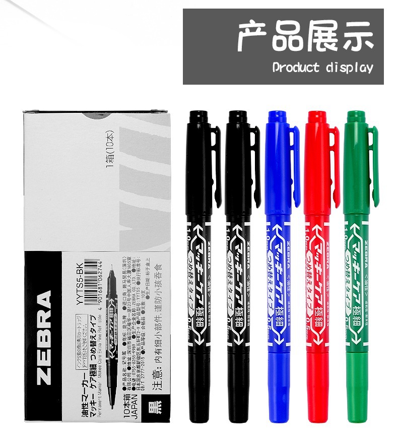 マーカー日本輸入ゼブラYYTS5油性ペン小双頭細い線筆黒マーカーペン