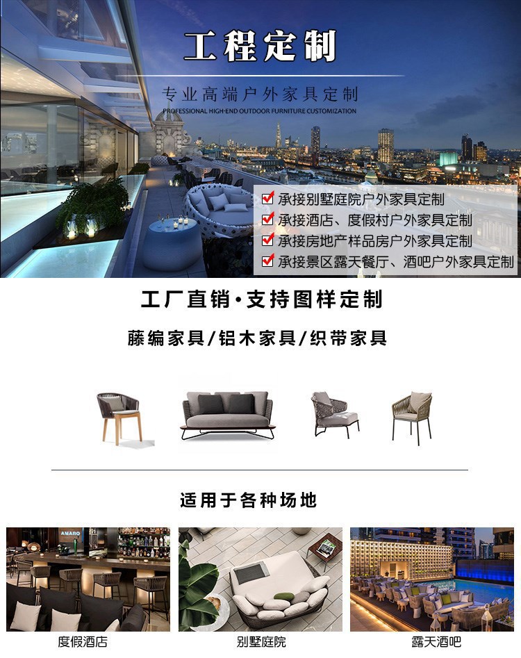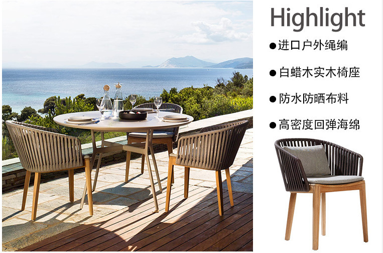 北欧チーク材レジャーソファ屋外家具ヴィラテラスホームステイサンルームガーデンホテルアルミ合金ソファ