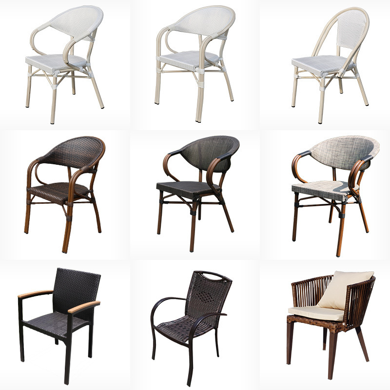 工場卸売り屋外藤椅子レジャーバルコニーホテル民宿庭園露店外に食卓と椅子の背もたれ藤編み椅子を置く