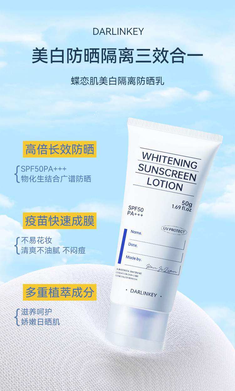 抖音蝶恋肌防shai霜SPF50+隔离防紫外线防水防汗三合一面部防shai