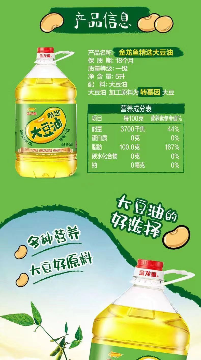 金龍魚精錬大豆油5l * 2バレル * 4バレル家庭用サラダ油植物油食用遺伝子組換え