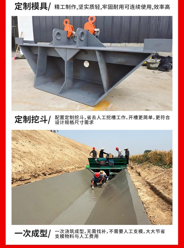 コンクリート排水溝成形機溝スライド機農地排水溝一次成形ルートスライド機