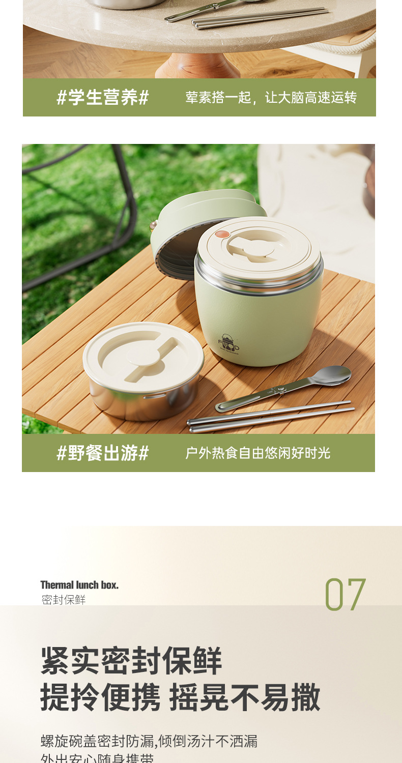 墩墩真空小提锅 304不锈钢保温饭盒上班族便携饭桶家用学生便当盒