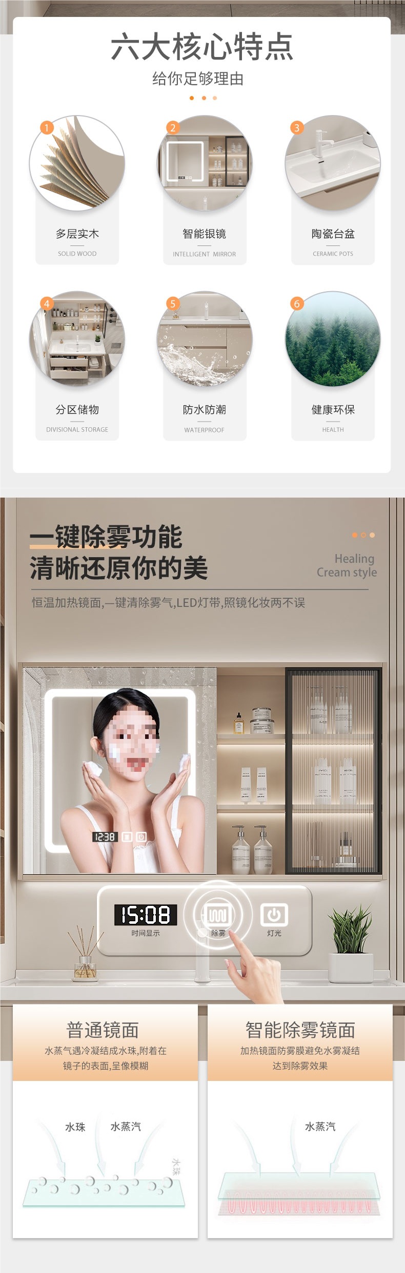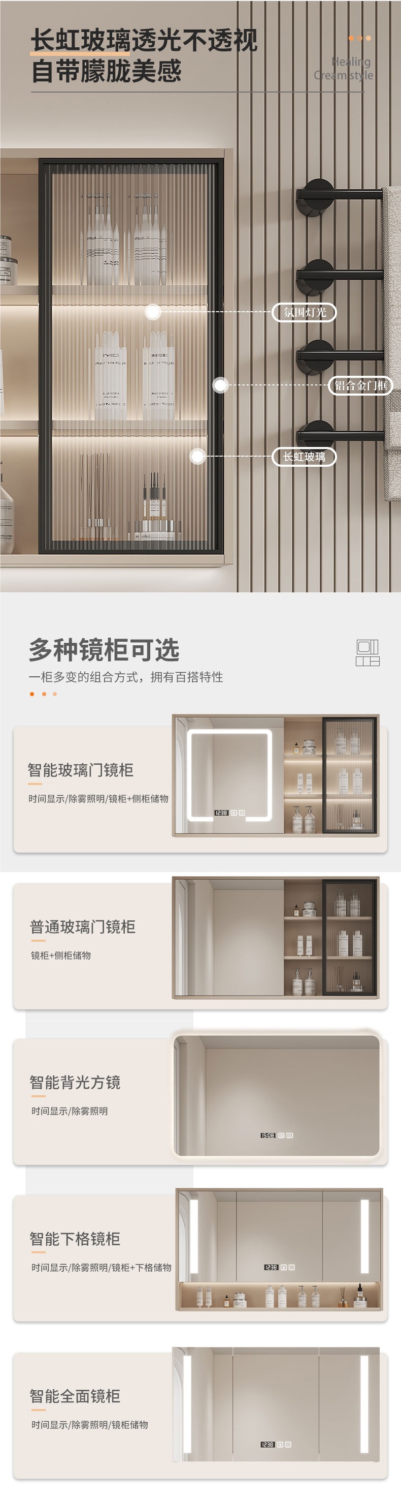L-クリームスタイル 60CM ガラスドア普通ミラーキャビネットスタイル、L-クリームスタイル 70CM ガラスドア普通ミラーキャビネットスタイル、L-クリームスタイル 80CM ガラスドア普通