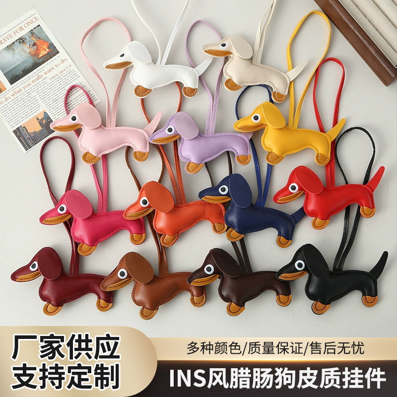 腊肠狗皮质挂件韩版diy可爱ins小狗包包挂件挂绳情侣汽车挂饰现货