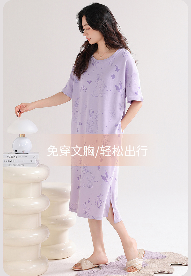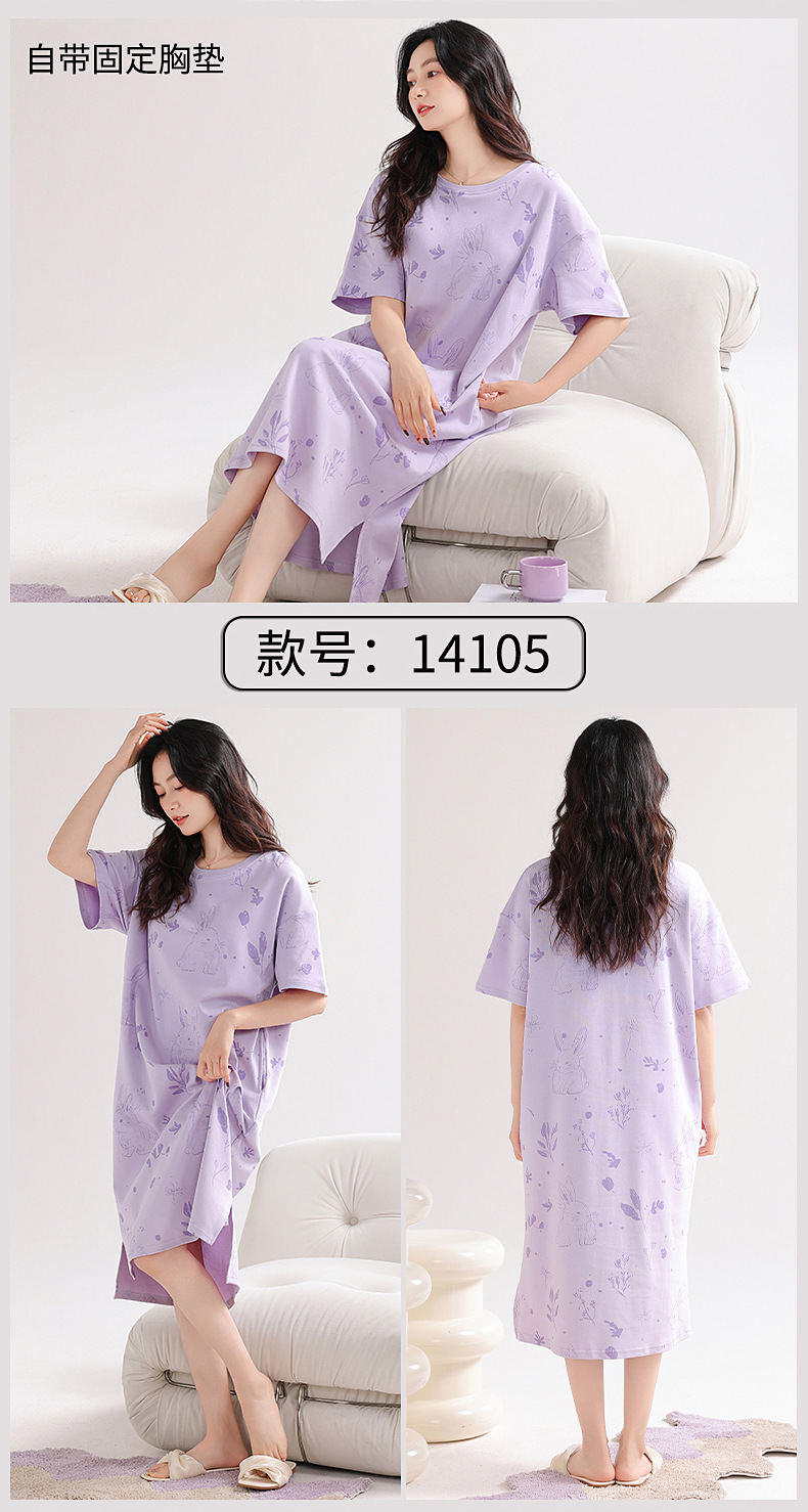 女性用パジャマ、夏用ナイトガウン、純綿、胸パッド付き、半袖、ミドル丈、薄手、ゆったりとしたドレス、屋外で着用可能、家庭服
