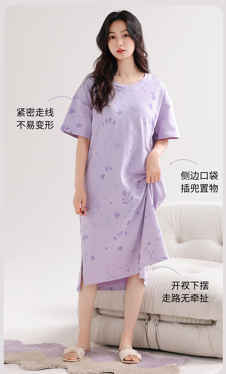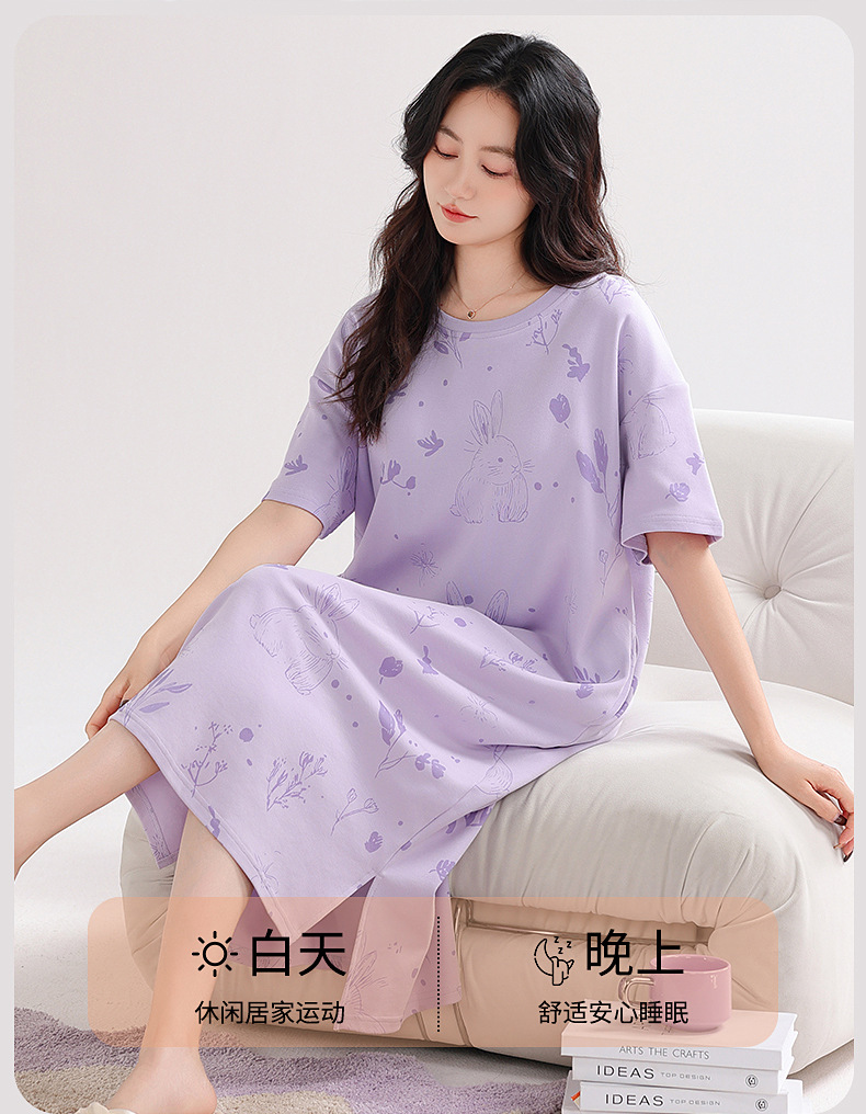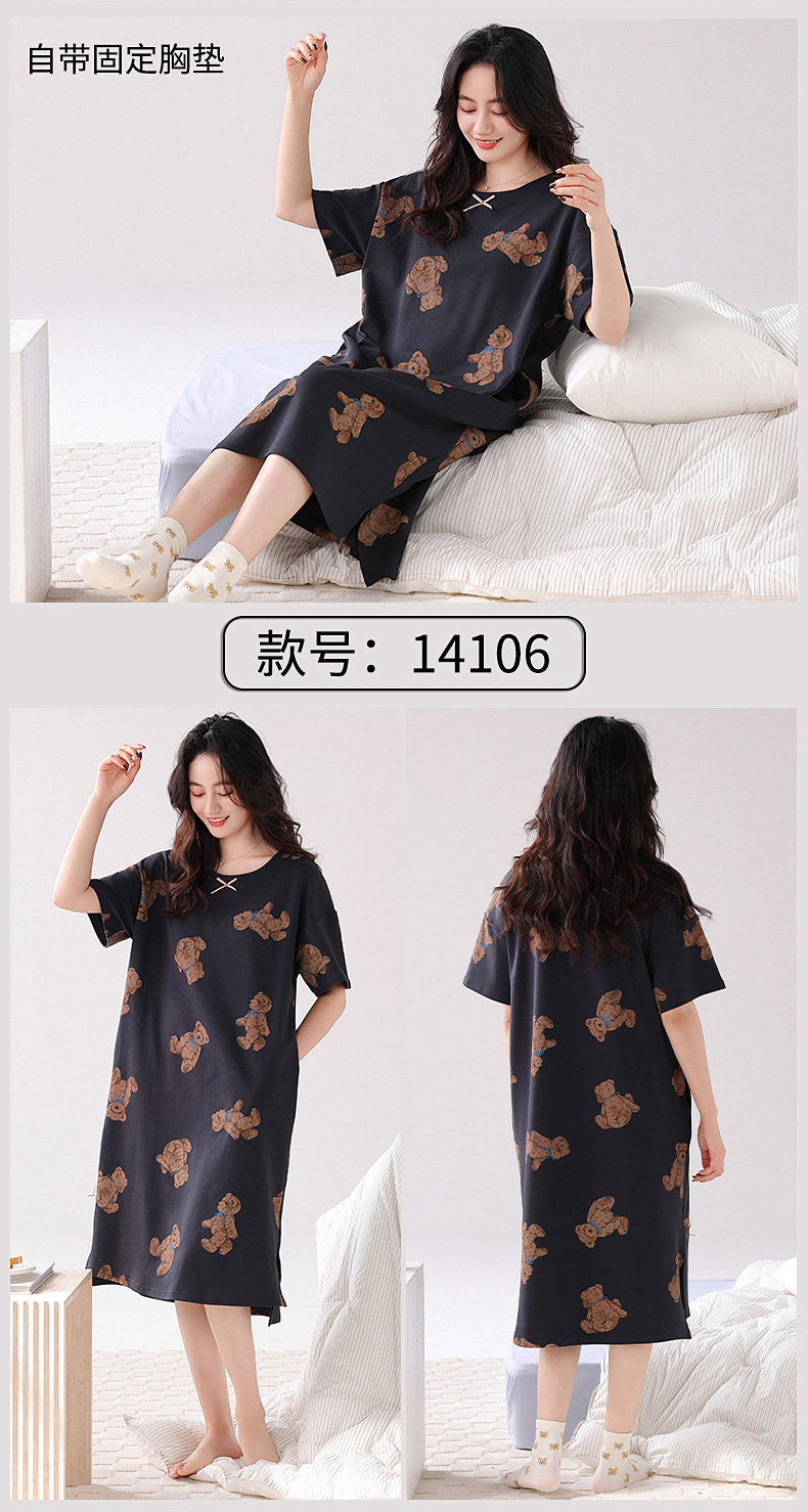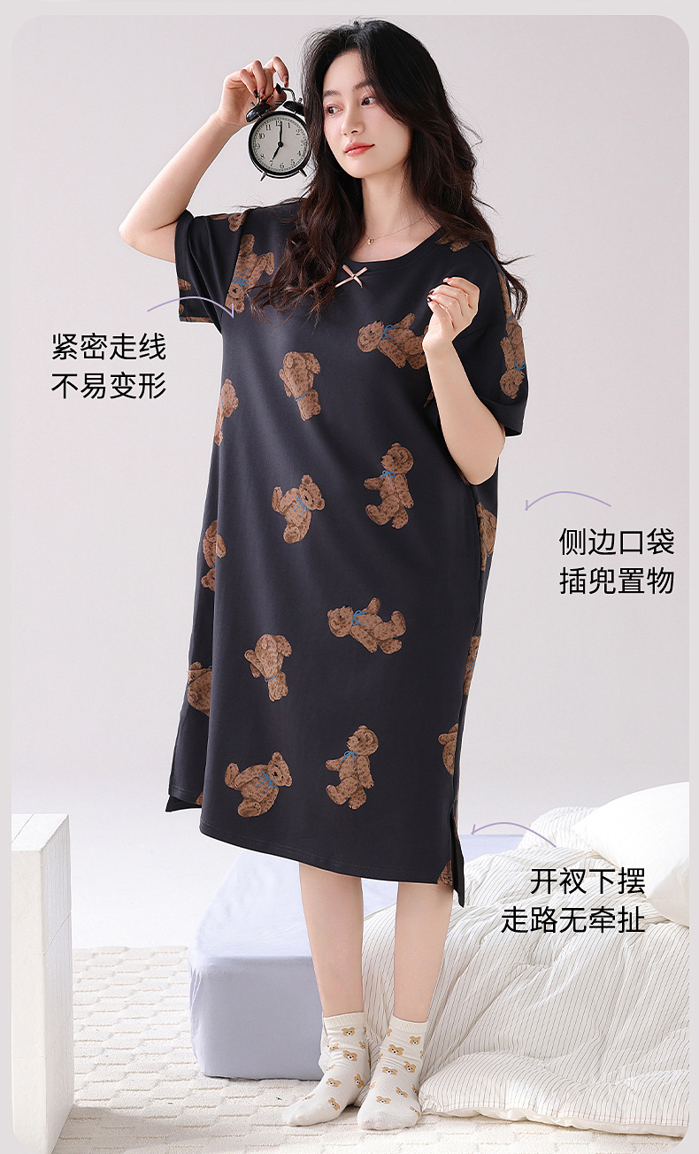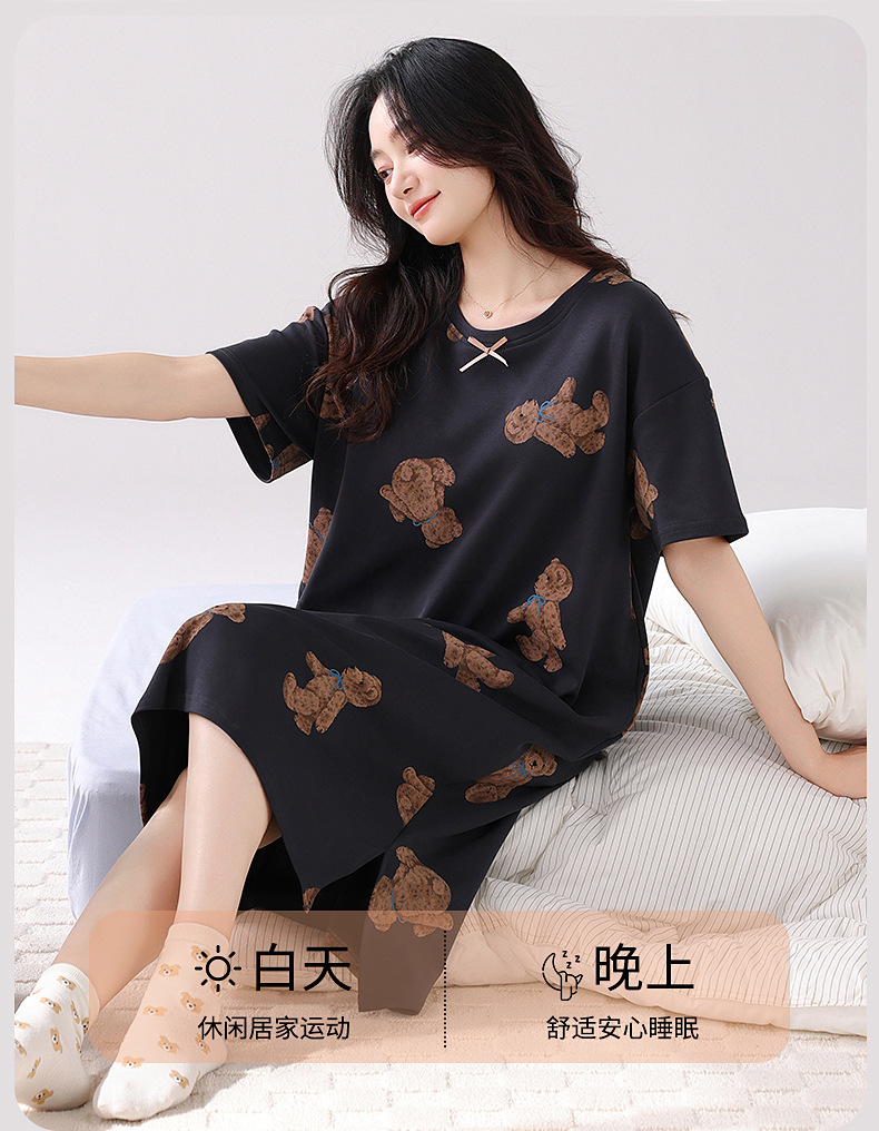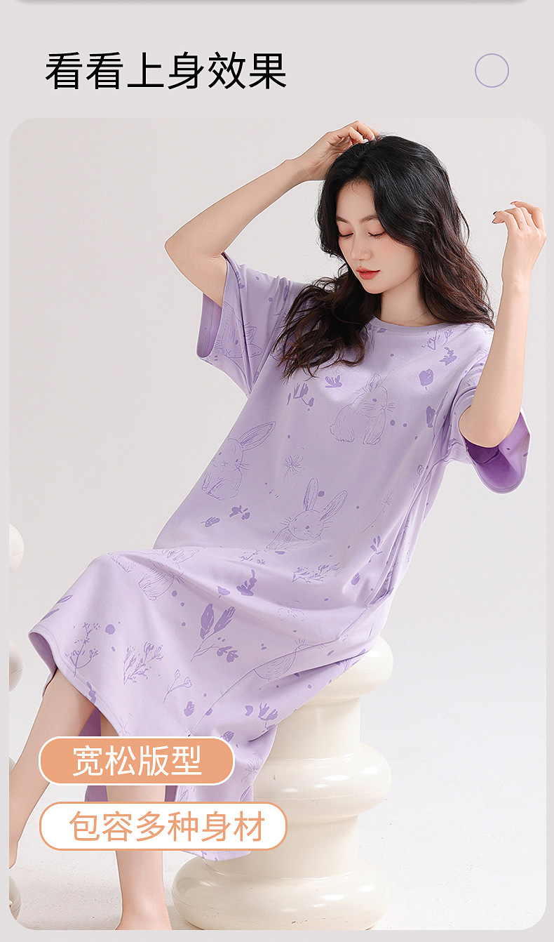 A类抗菌纯棉睡裙女士夏季短袖连衣裙女卡通大码少女学生去买睡衣