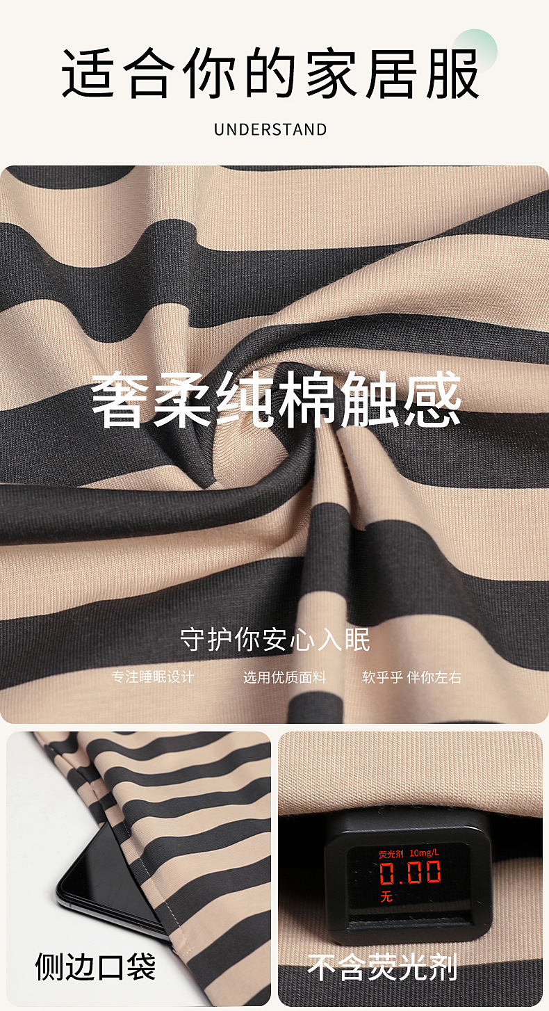 莫代尔睡裙女彩棉螺纹V领套头长袖连衣裙宽松舒适春秋纯色家居服