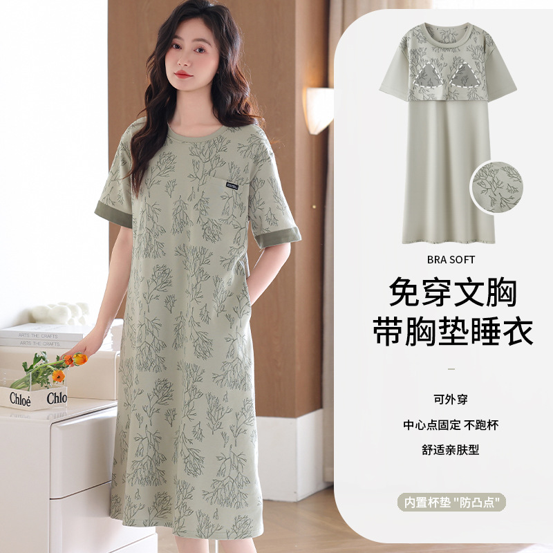 胸パッド付きナイトガウン女性の夏の純粋な綿半袖薄い夏のパジャマスカート 2025 新しい夏のドレス
