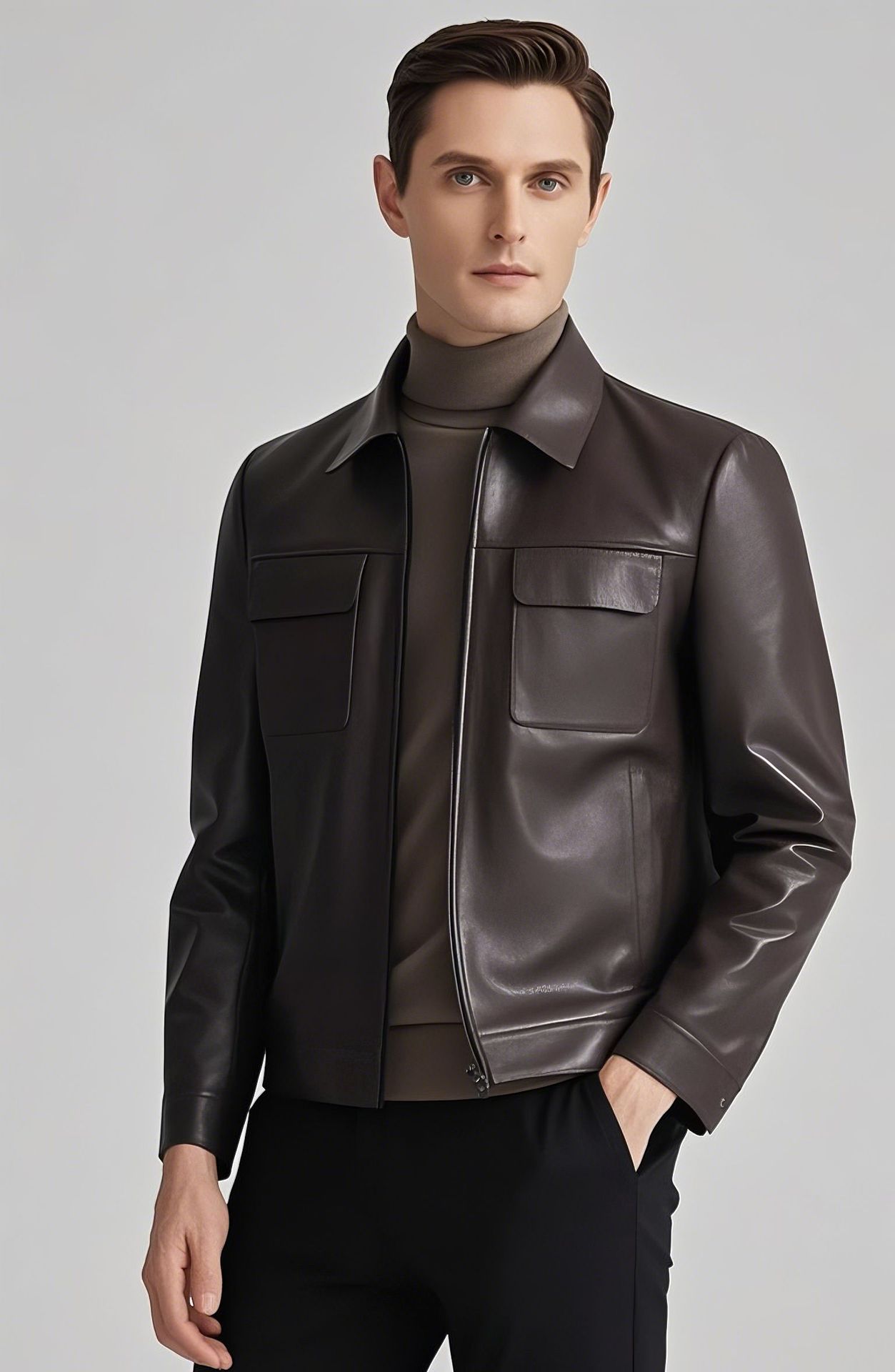 海寧真皮秋冬紳士服立襟子牛革ジャケット出勤レジャービジネスファッション男性革コート春秋