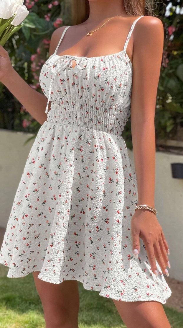 クロスボーダー夏花柄フロントノットウエストサスペンダードレス爽やかで甘い花柄サスペンダードレス