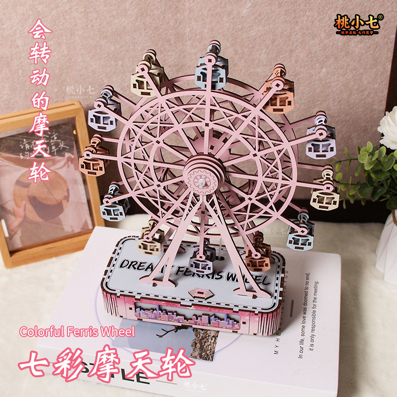 抖音同款造景diy摩天轮手工拼装带灯旋转摆件八音乐盒礼物送女生