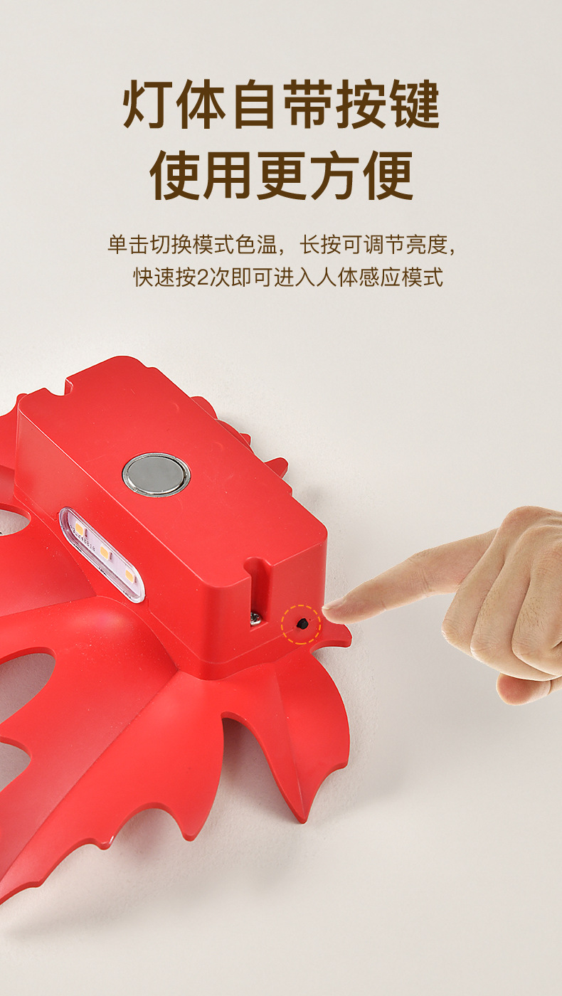 蝴蝶灯壁灯室内房间卧室洗手间感应壁灯 免布线磁吸感应灯 充电款