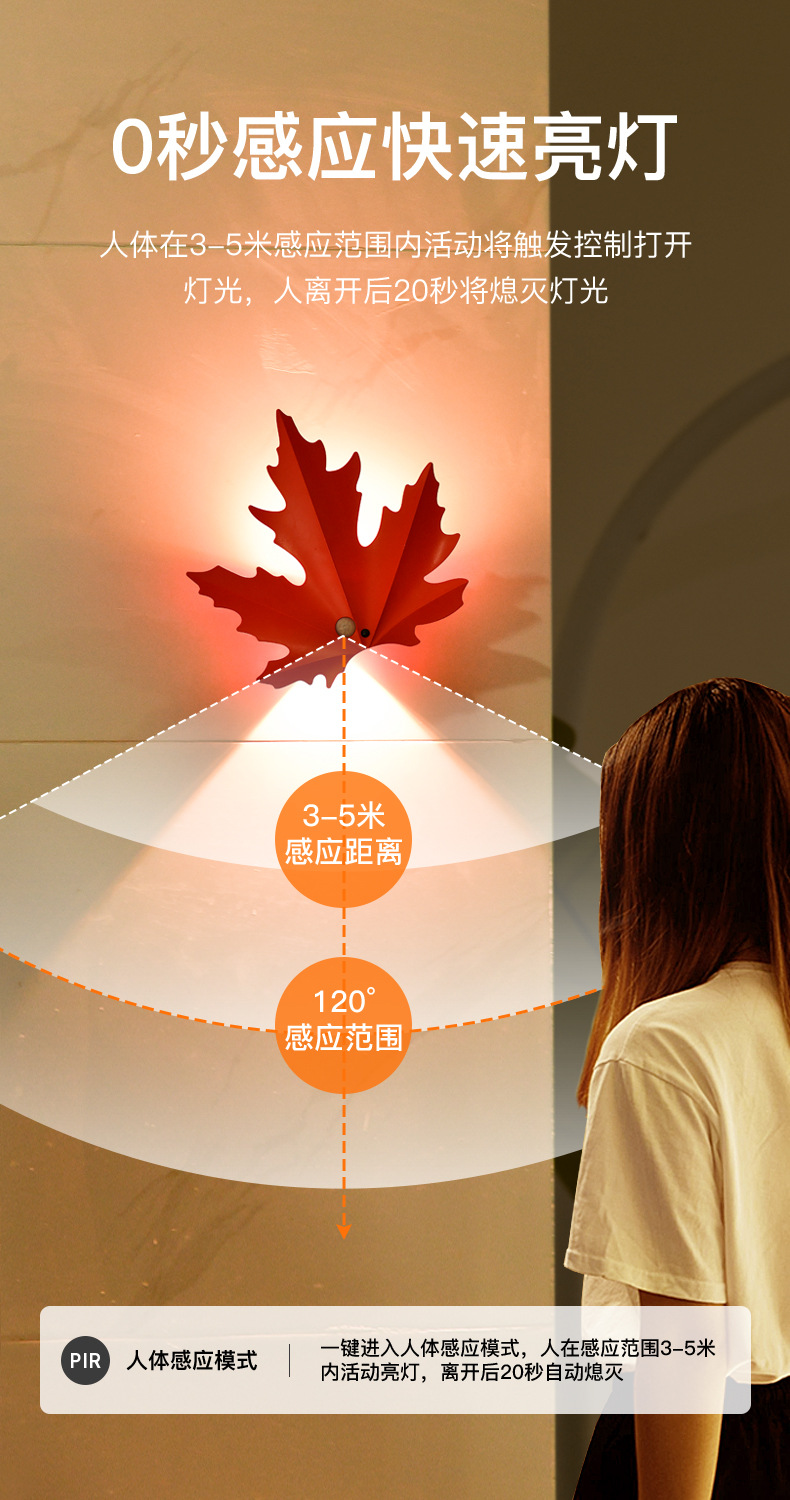 国境を越えた人体誘導灯寝室階段客間壁灯魔魚服戸棚看板灯充電電池小夜灯
