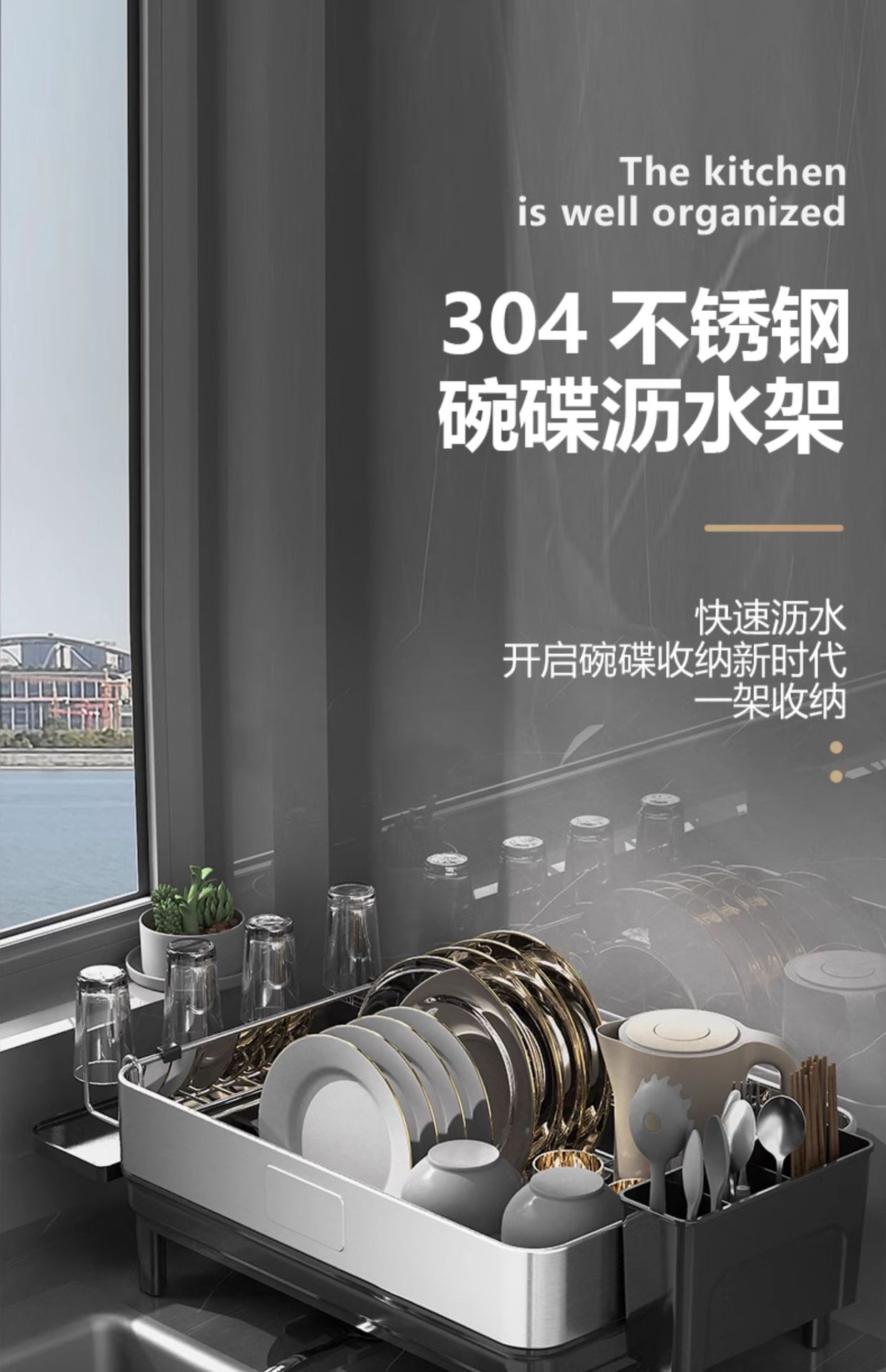 304ステンレス製キッチン食器収納ラック、シンク排水ラック、多機能食器置き、水切りラック、軽奢