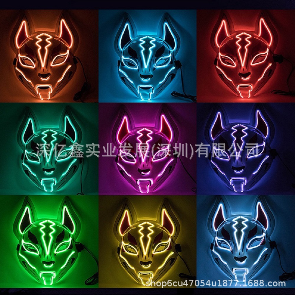 人気のDouyinインターネットセレブキツネマスクLED発光マスク蛍光雰囲気小道具キツネマスク卸売在庫あり