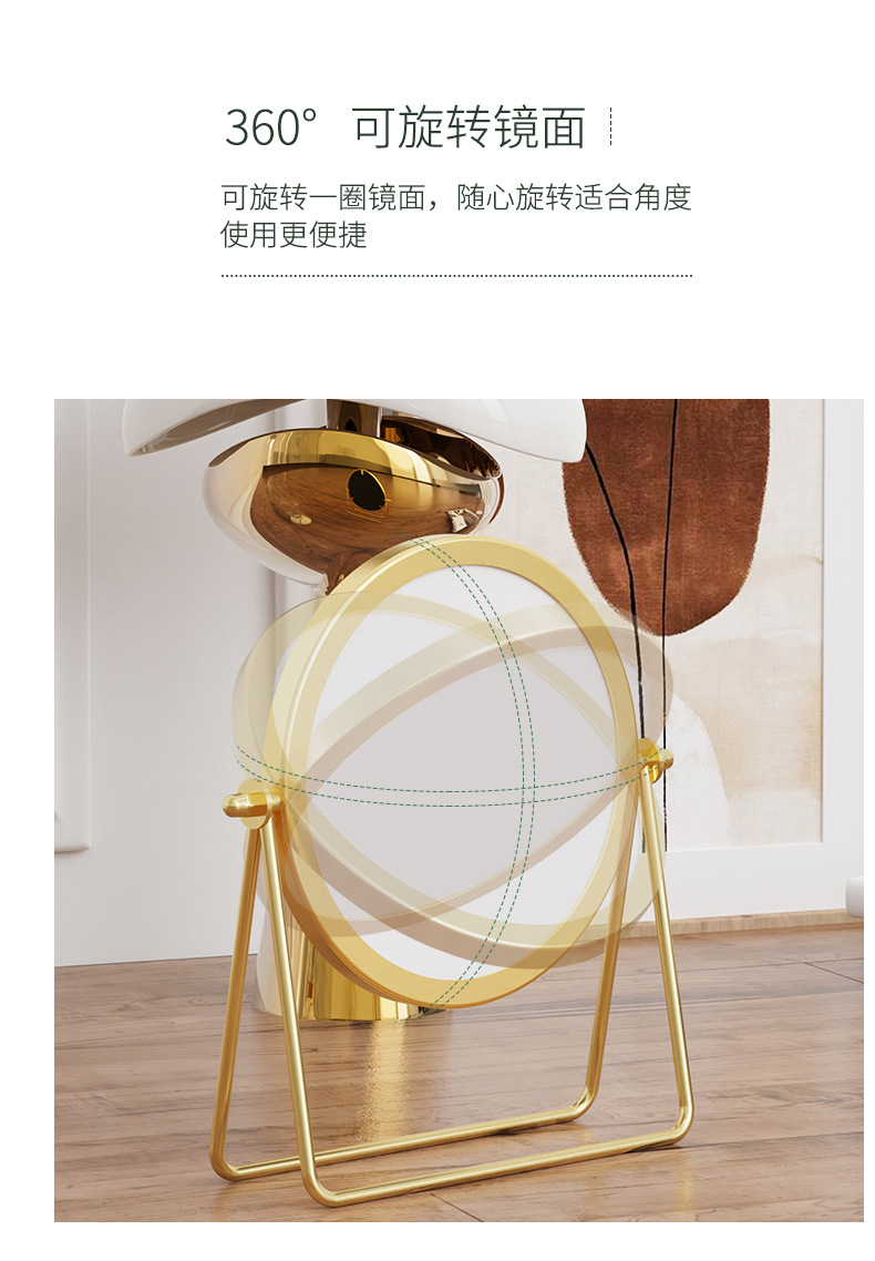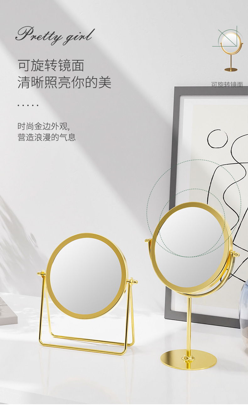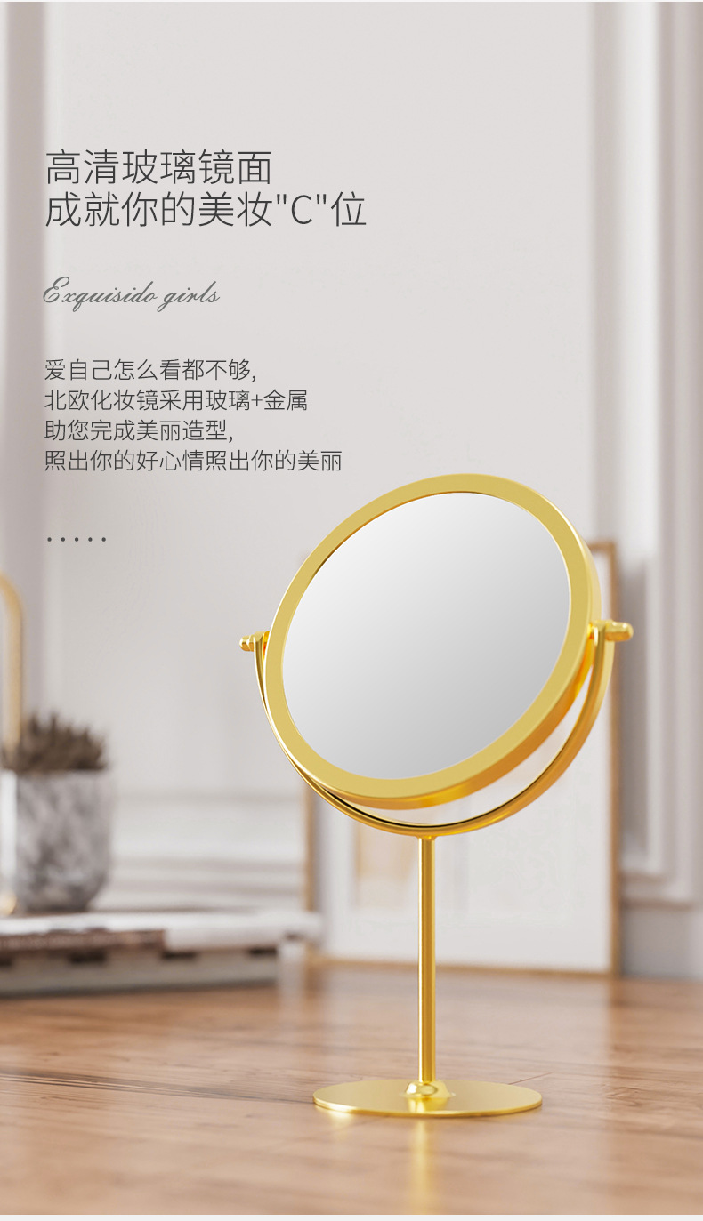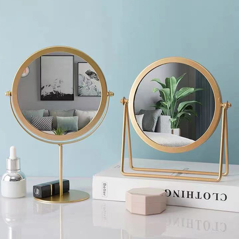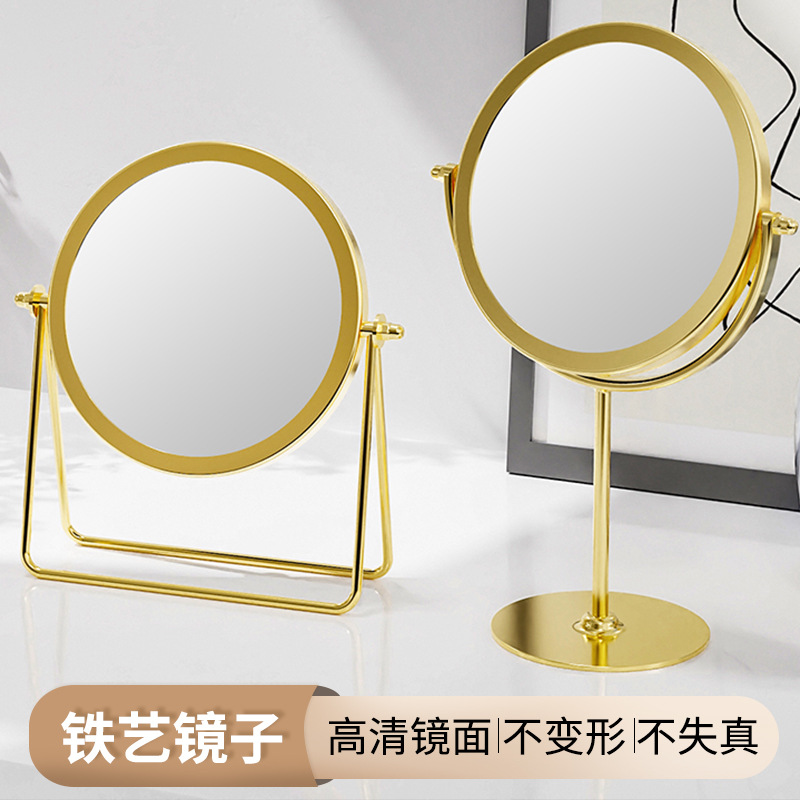 网红款铁艺镜子高颜值台式单面可旋转梳妆镜学生宿舍女桌面化妆镜